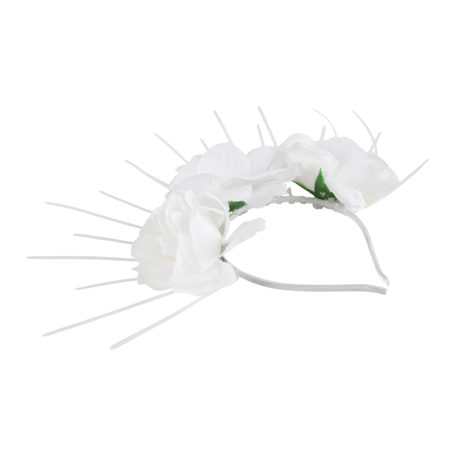 Карнавальный Ободок Цветы Белый — незаменимый атрибут для тематических праздников! Он позволит с головой погрузиться в выбранную роль и отлично завершит образ. Эффектный аксессуар преобраззит подчеркнет ваш неповторимый стиль на вечеринке с переодеванием.