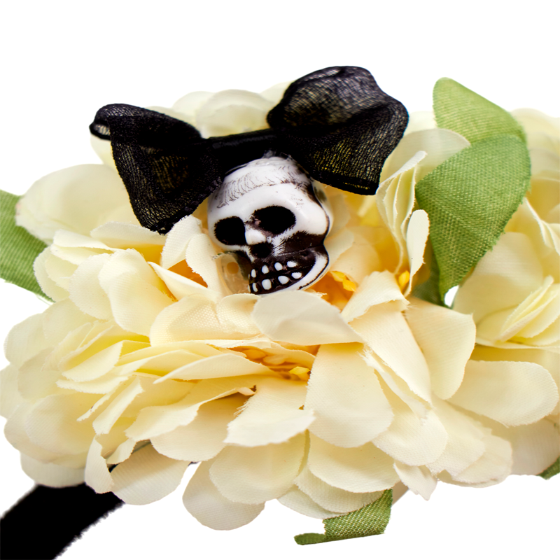 Ободок Цветы с черепами Белый
