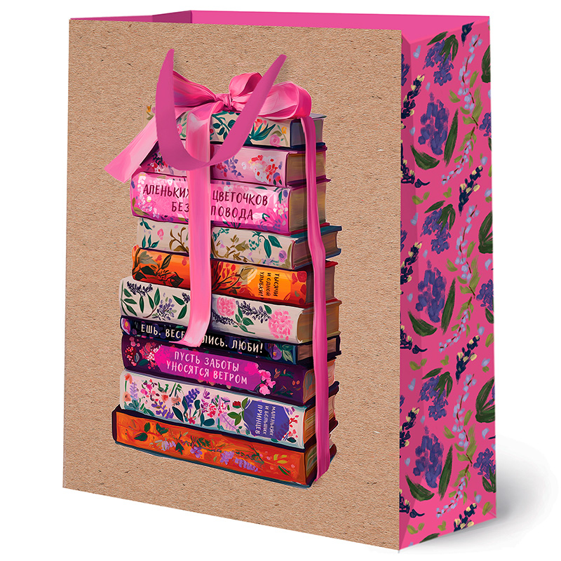 Стильный подарочный пакет, дизайн которого вдохновлён книгами, каждая из которых словно хранит в себе добрые слова и пожелания.
