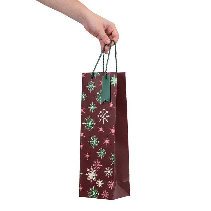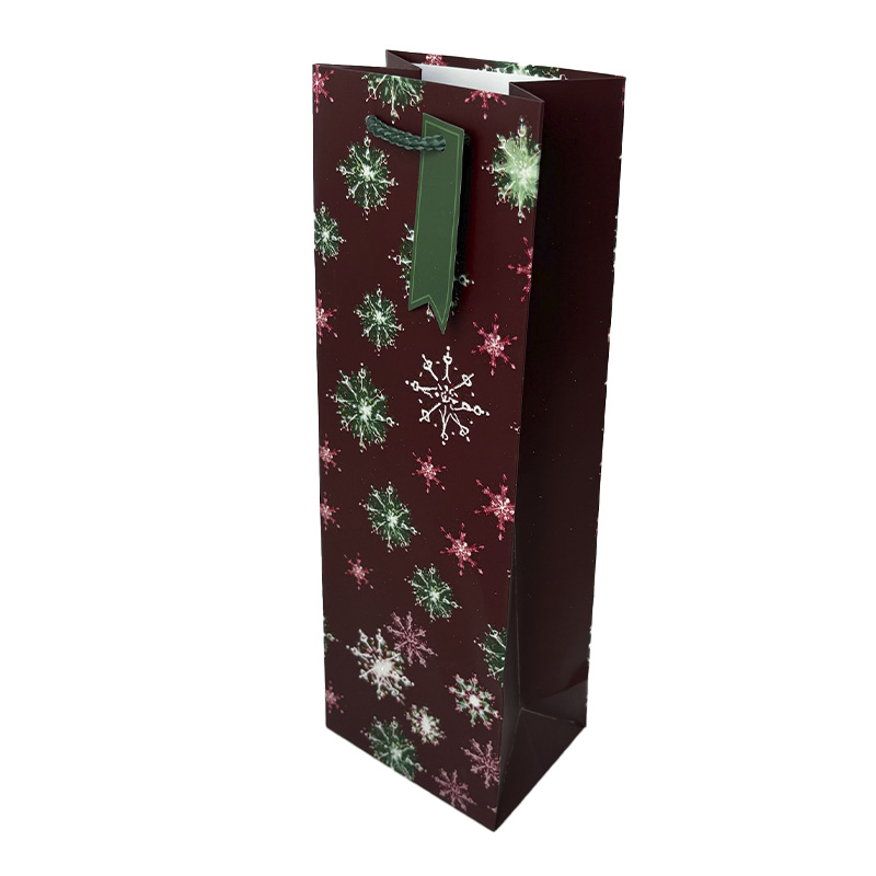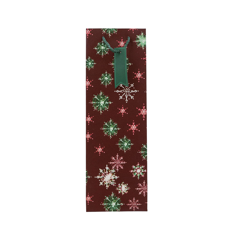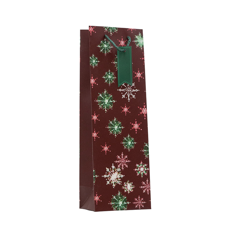 Пакет подарочный под бутылку "С новым годом! Снежинки. Красный стиль"