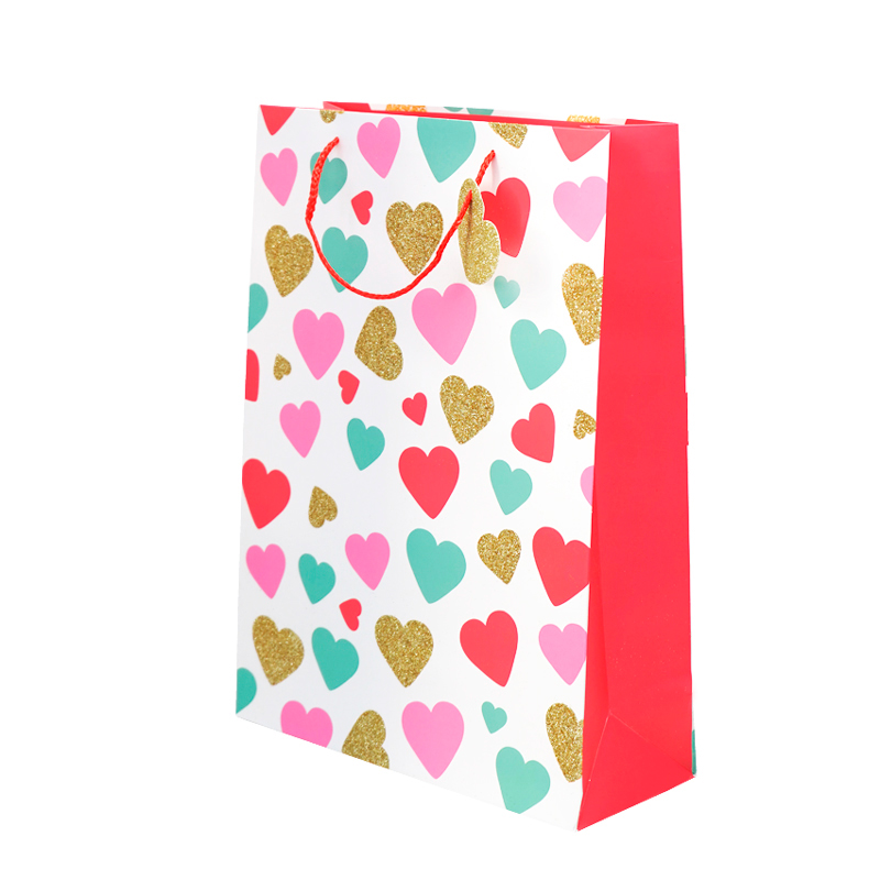 Снаружи пакет покрыт глянцевой ламинацией, что придает ему прочность, а изображению - яркость и насыщенность. Для придания дополнительного блеска на пакете есть элементы с тиснением глиттером.