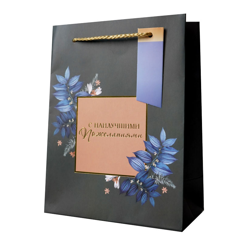 Пакет подарочный "С наилучшими пожеланиями", Серый, Тиснение фольгой