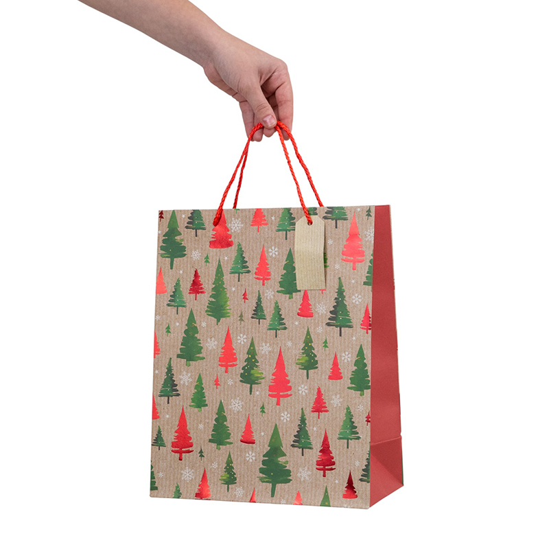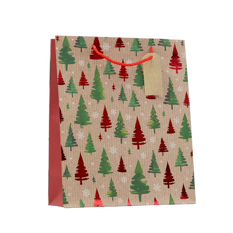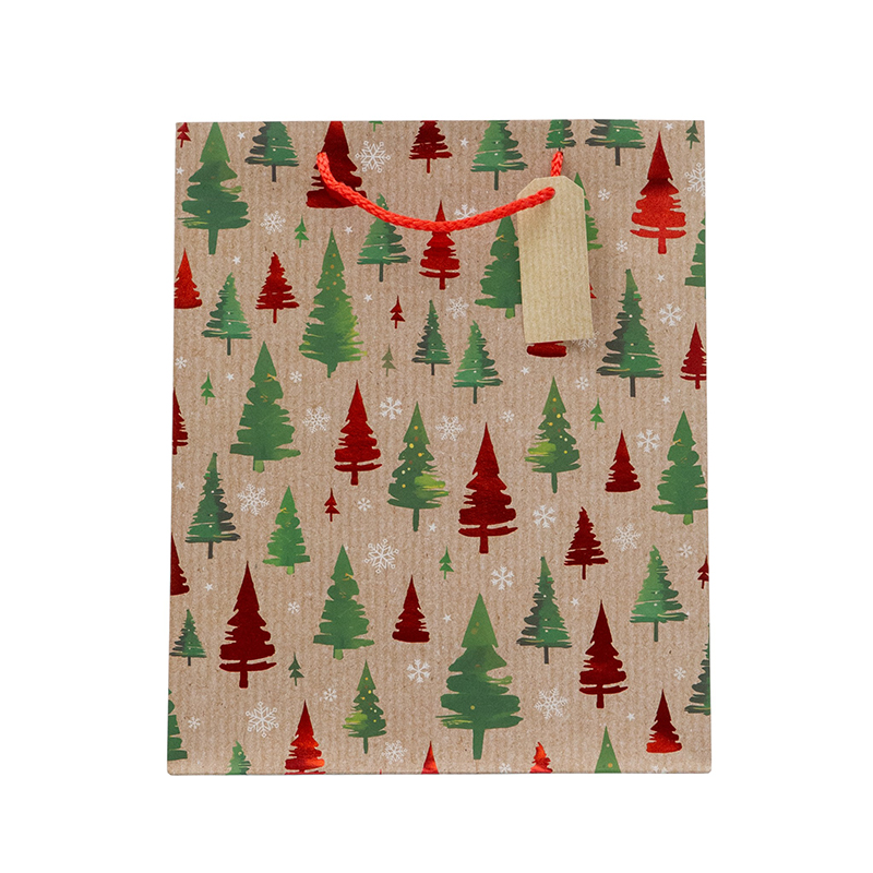 Пакет подарочный "С новым годом! Ёлки красные, зелёные. Крафт"
