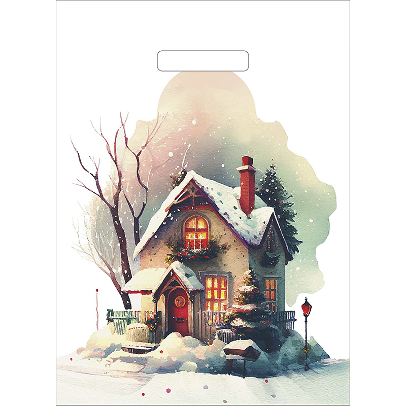Пакет полиэтиленовый с вырубной ручкой «Рождественский домик»