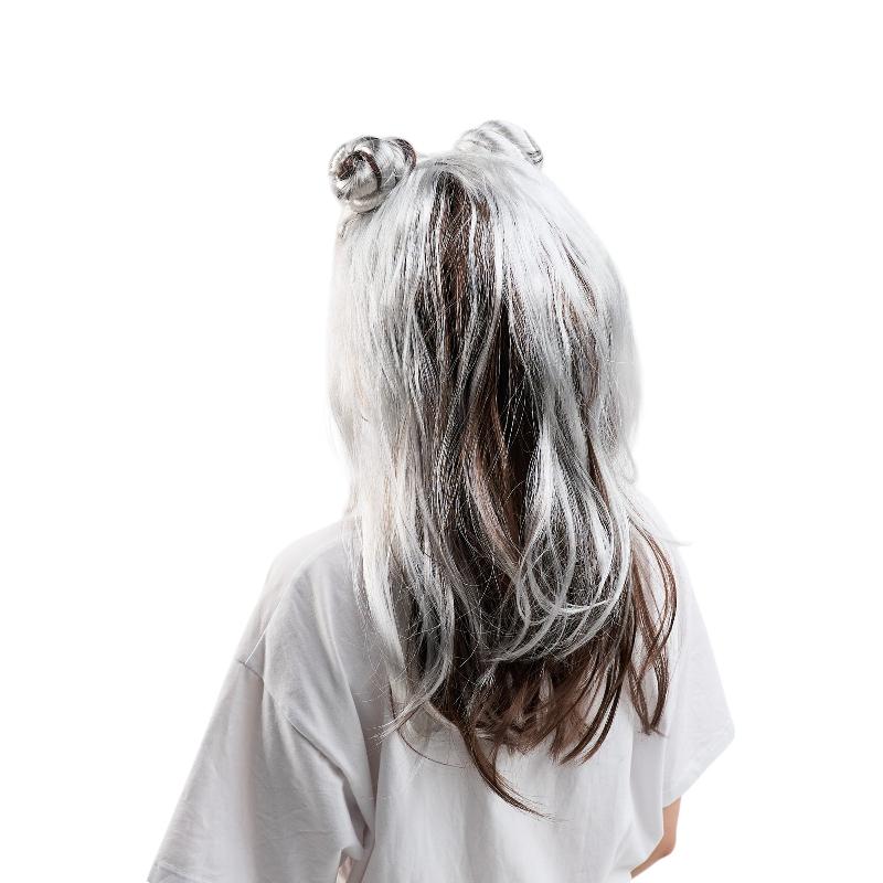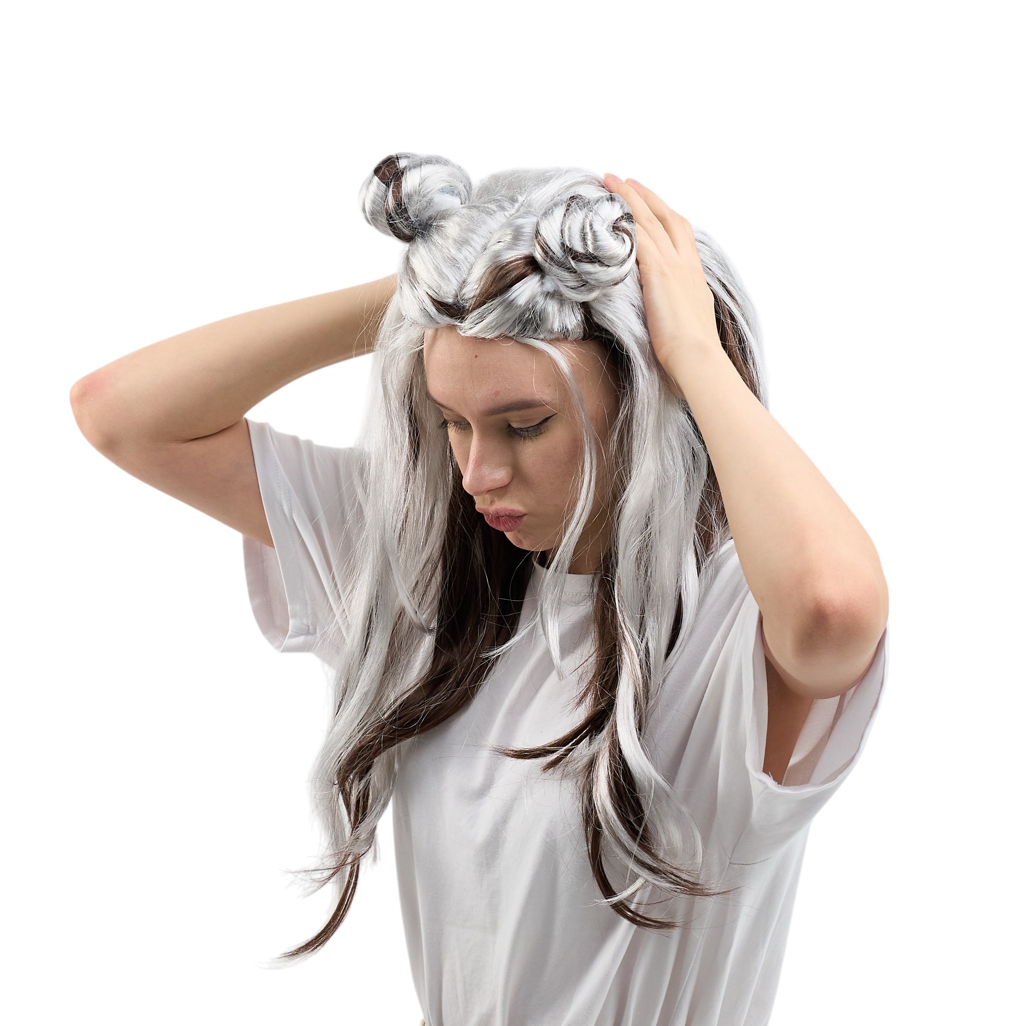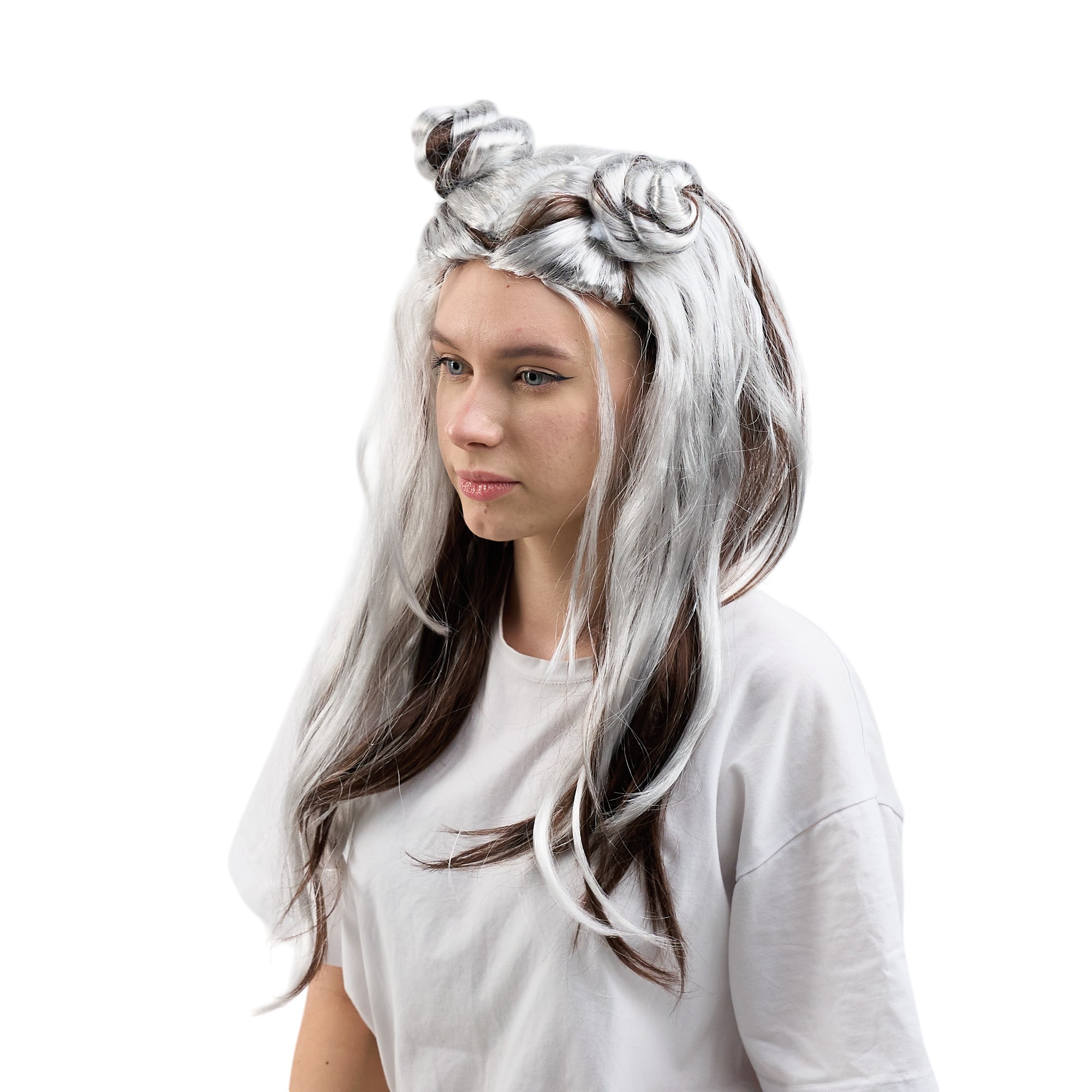 Парик "Аниме" Серый, длинные волосы и шишечки