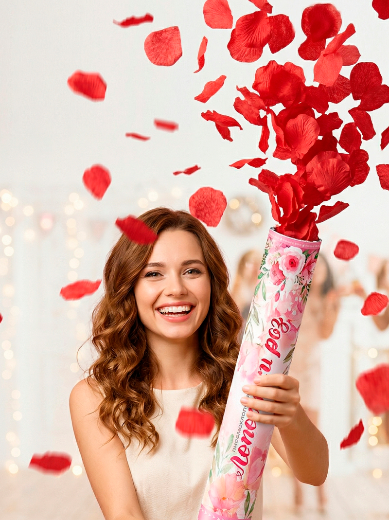Выстрел красными лепестками роз создаст неповторимую атмосферу романтики и волшебства для влюбленной пары.