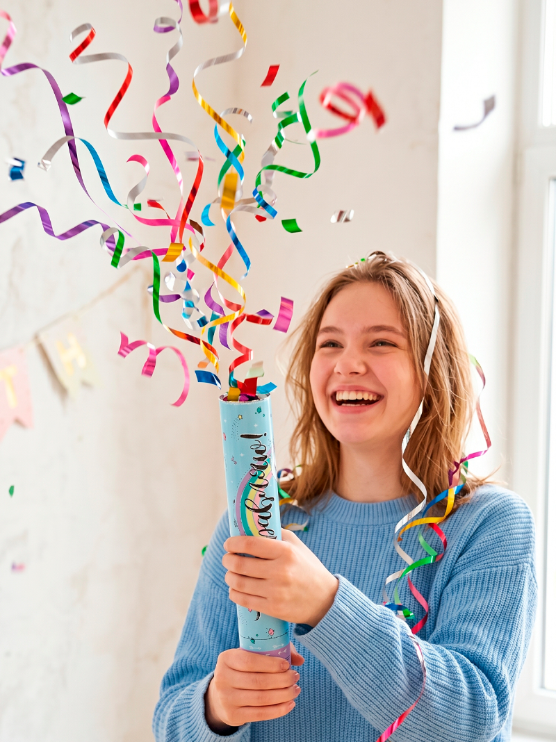 Хлопушка универсальна и ее можно запускать на любом мероприятии, даже взрослым на детском празднике, так как она выполнена в стиле популярного направления Poopsie.