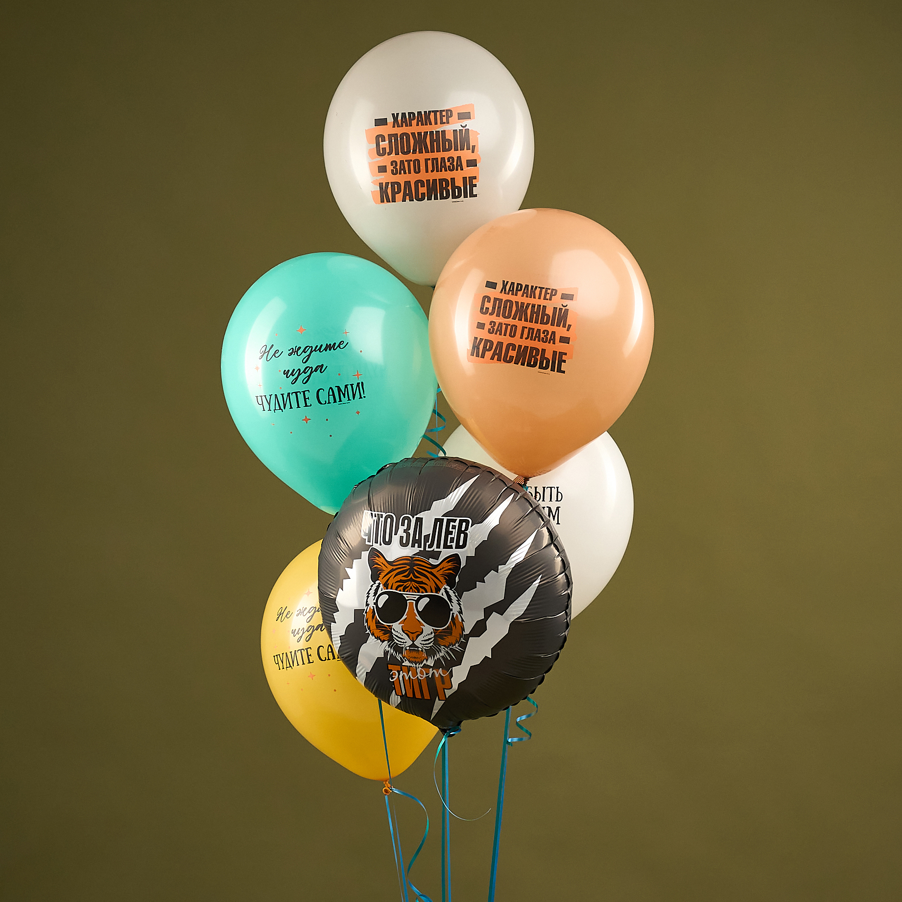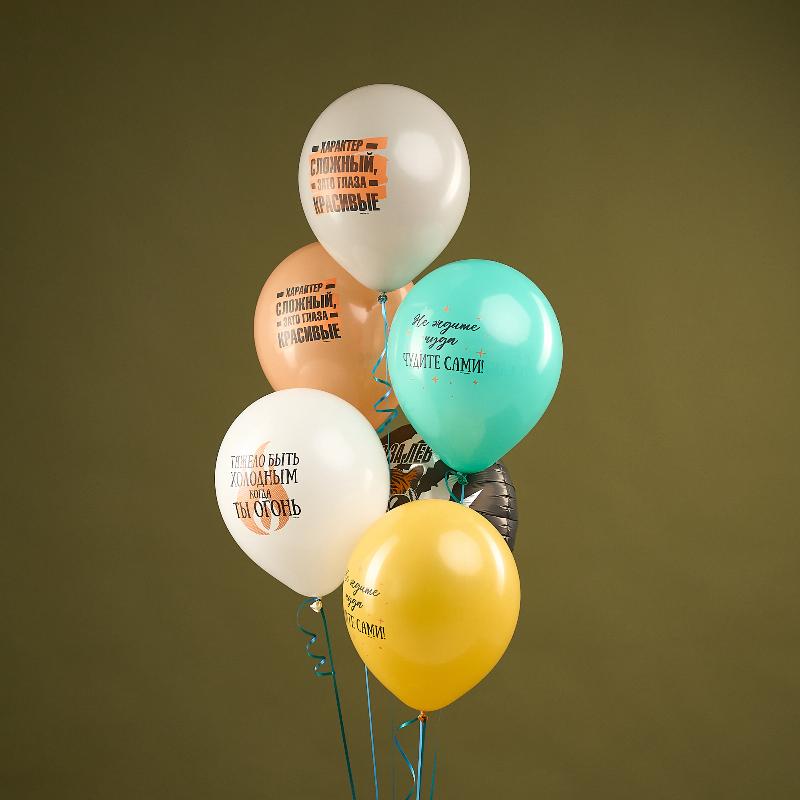 Надписи на воздушных шарах: "Характер сложный, зато глаза красивые"; "Тяжело быть холодным, когда ты огонь", "Не ждите чуда - чудите сами".