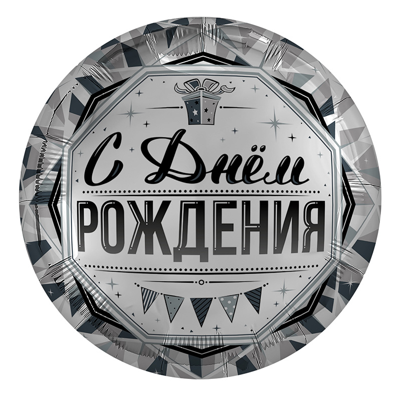 Роскошь серебра "С Днем Рождения", фольгированный шар