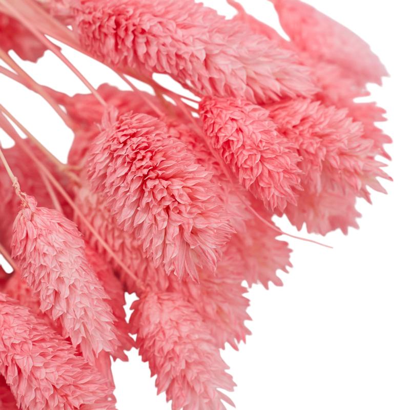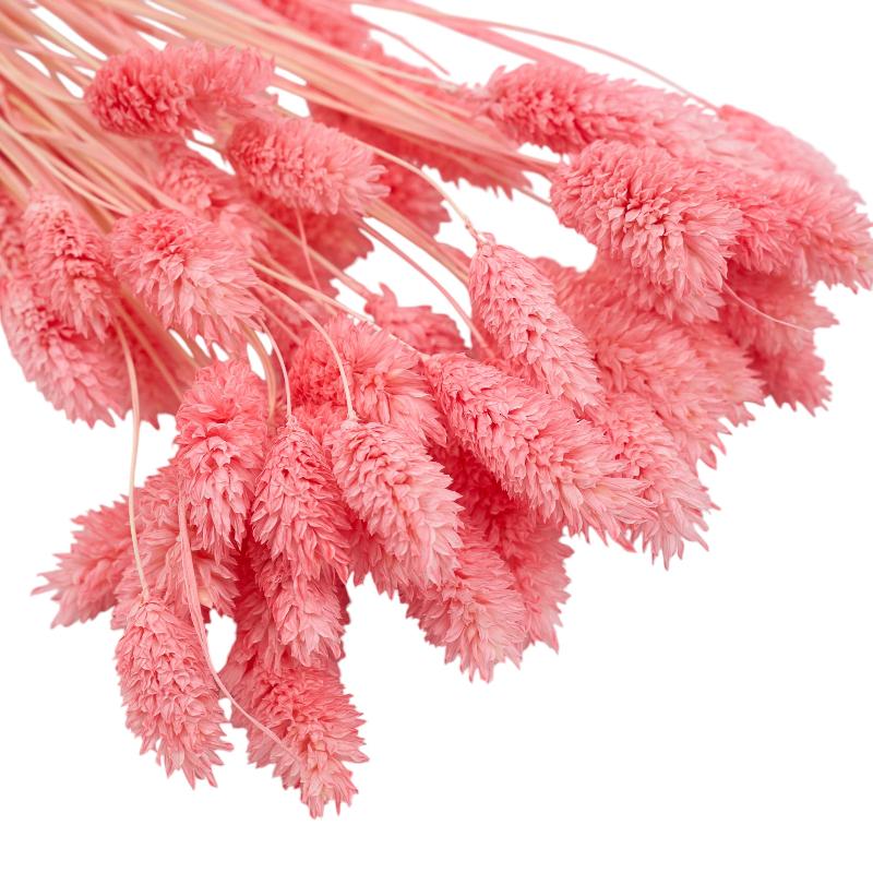 Сухоцвет Фалярис, Розовый -  это удивительное растение, которое завораживает своей элегантностью и простотой. Его тонкие, стройные стебли поднимаются в высоту, словно стремящиеся к свету, а белоснежные верхушки напоминают облака, остающиеся в памяти на фоне синевы неба. Их нежный цвет придаёт композициям лёгкость и изящество, создавая воздушные, почти эфемерные букеты.