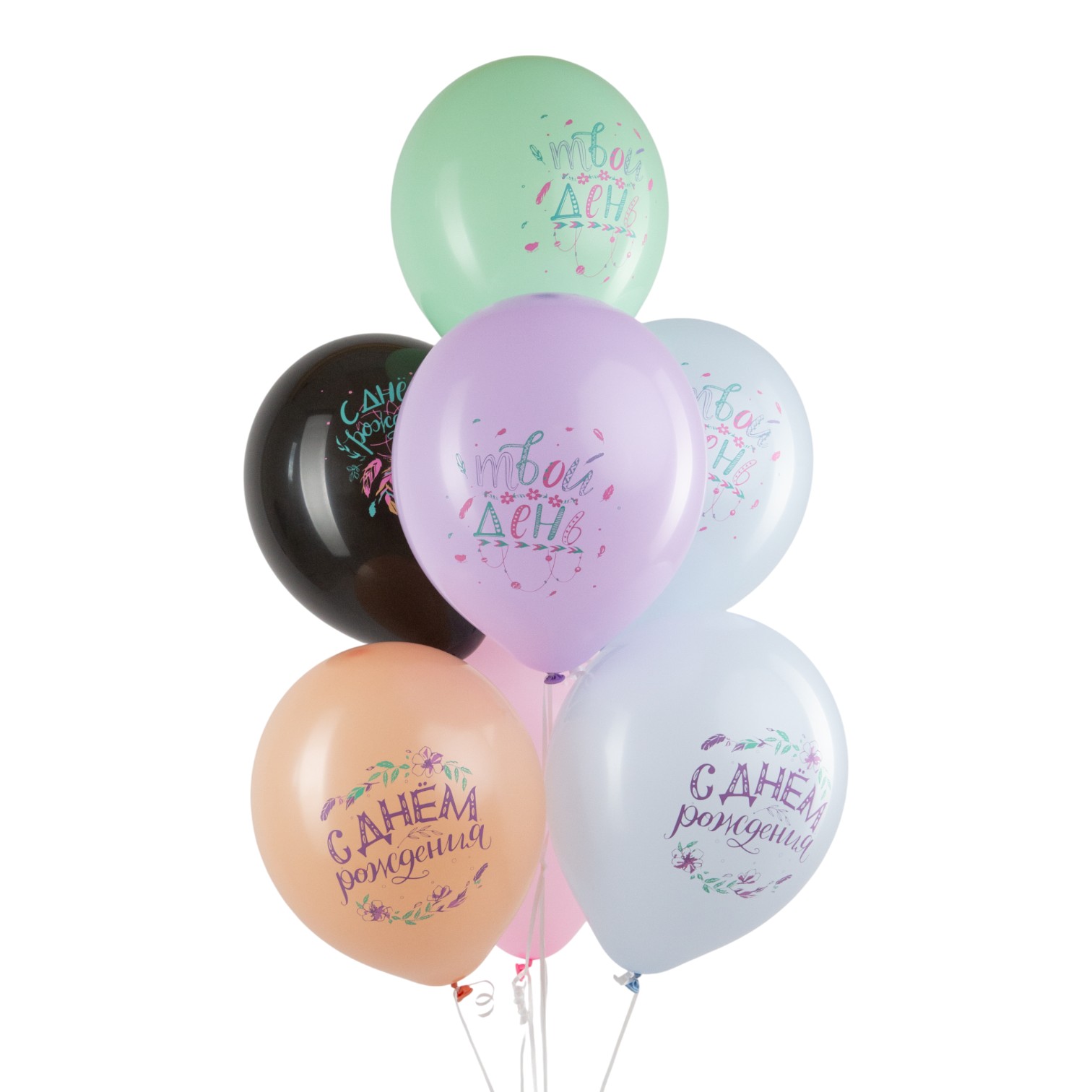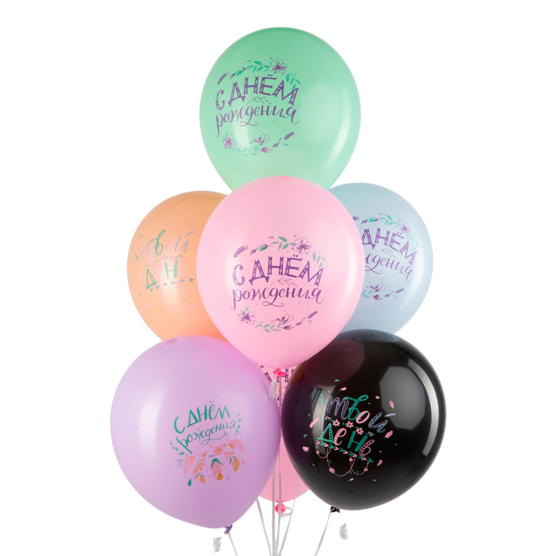 С Днем рождения Бохо, Ассорти Пастель, латексный шар