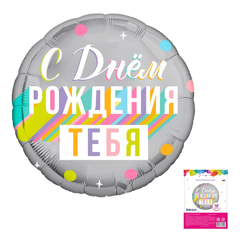 С днем рождения тебя (дизайн ООО БРАВО) в упаковке, фольгированный шар