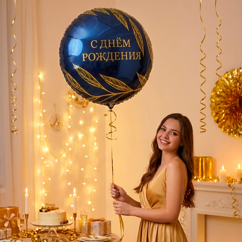 Стильный фольгированный воздушный шар С Днем Рождения Золотой шик со сдержанным дизайном будет прекрасным дополнением к подарку или сюрпризу.