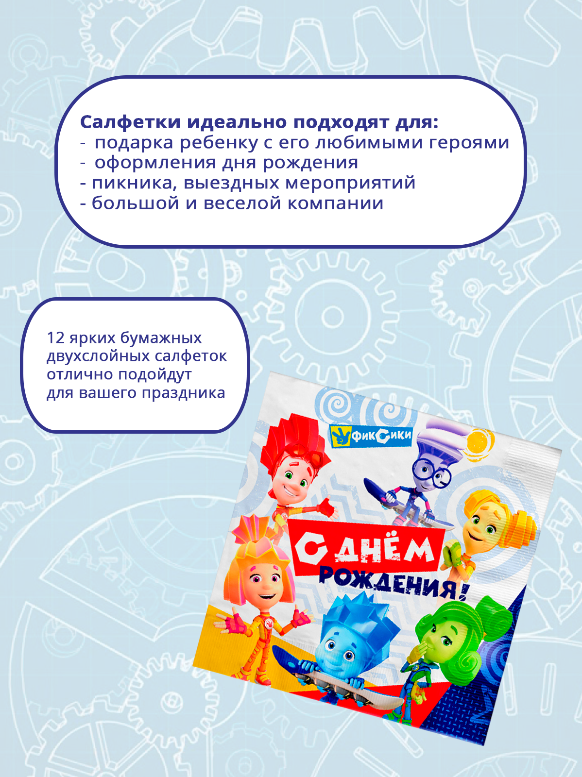 Праздничные салфетки двухслойные «Фиксики» дополнят оформление стола и добавят праздничных акцентов вечеринке.