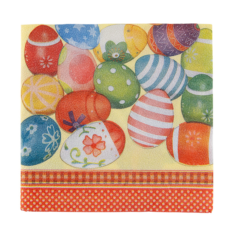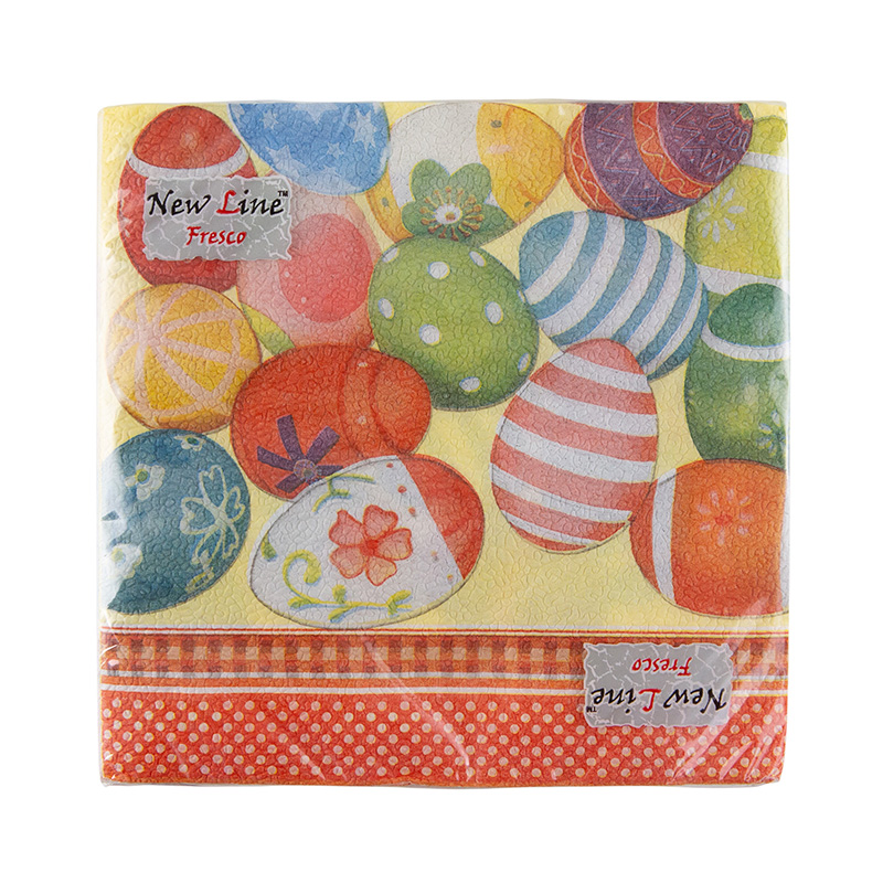 Салфетки New line 33*33 "Пасха Яйца кант" прекрасно подойдут для украшения стола и добавят ярких красок в праздник! Дизайн добавит нотку веселья и радости, создавая атмосферу светлого праздника.