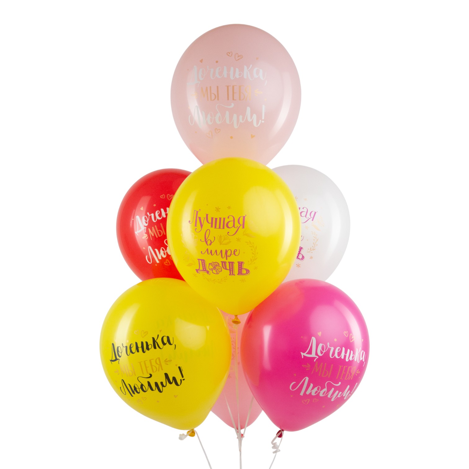 Надписи на шарах: "Доченька, с днем рождения", "Доченька, мы тебя любим", "Лучшая в мире дочь".
