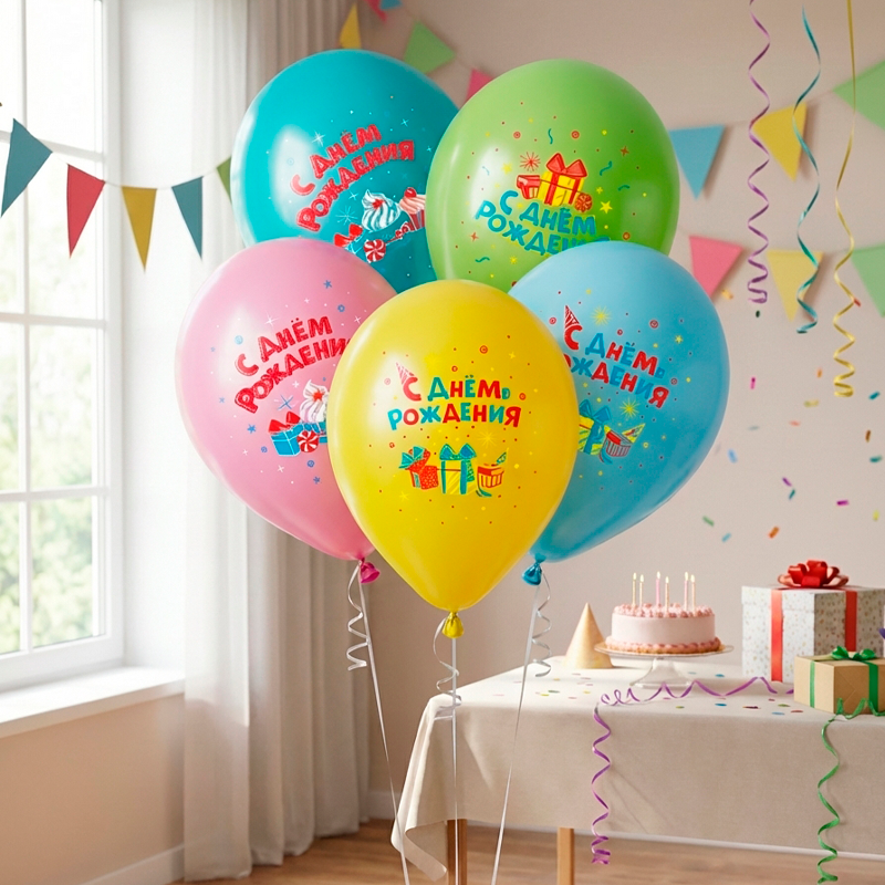 Надписи на воздушных шарах: "С Днем рождения".