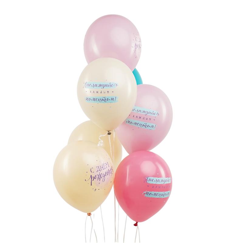 Надписи на шарах: "Мечты должны сбываться", "С Днем рождения", "Наслаждайся каждым моментом!".