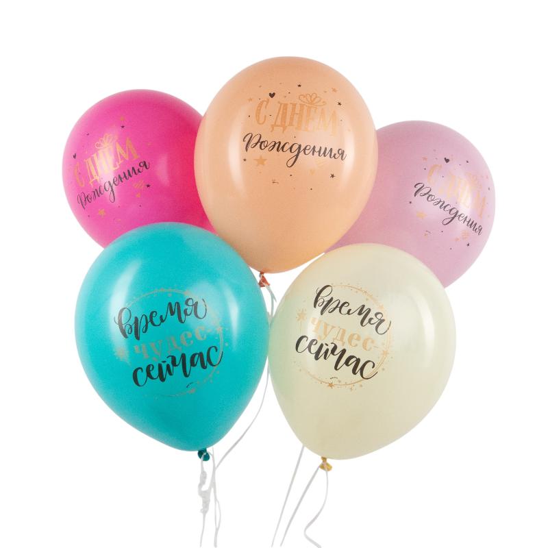 Надписи на шарах: "Время чудес сейчас", "С Днем рождения", "Следуй за мечтой".