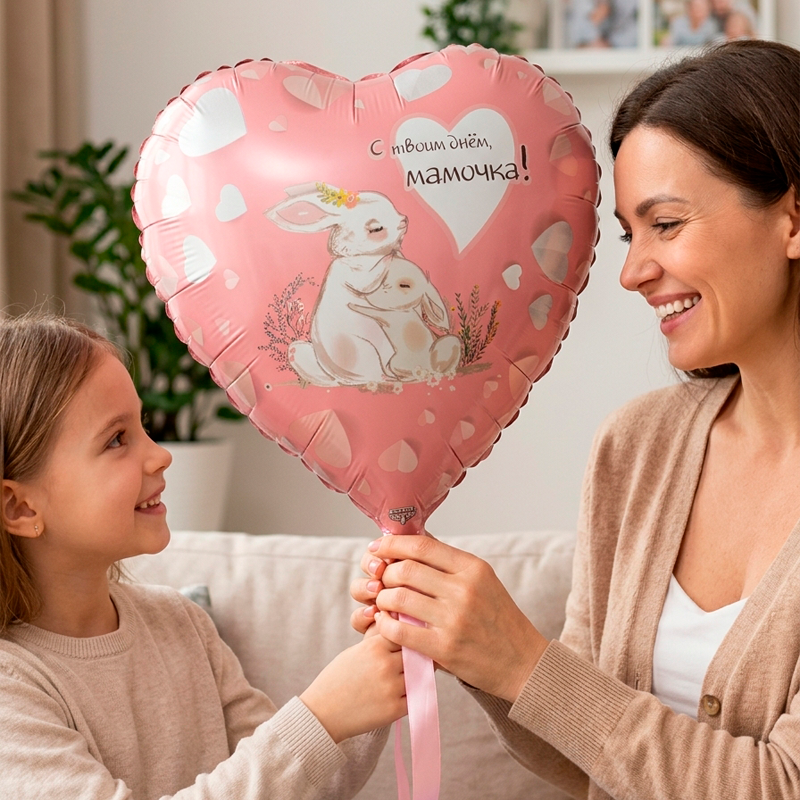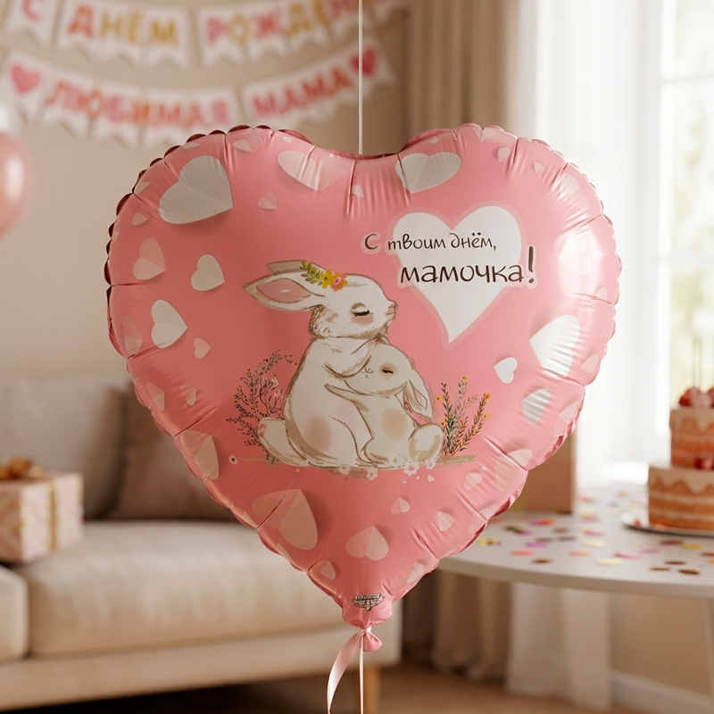 Сердце "С твоим днем, мамочка" в упаковке, фольгированный шар