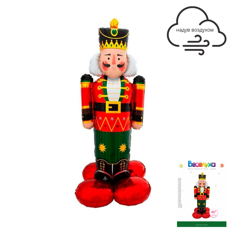Стильный большой фольгированный воздушный шар Щелкунчик на подставке – центральная фигура в новогоднем декоре. Идеально дополнит тематическую фотозону и станет прекрасным подарком.