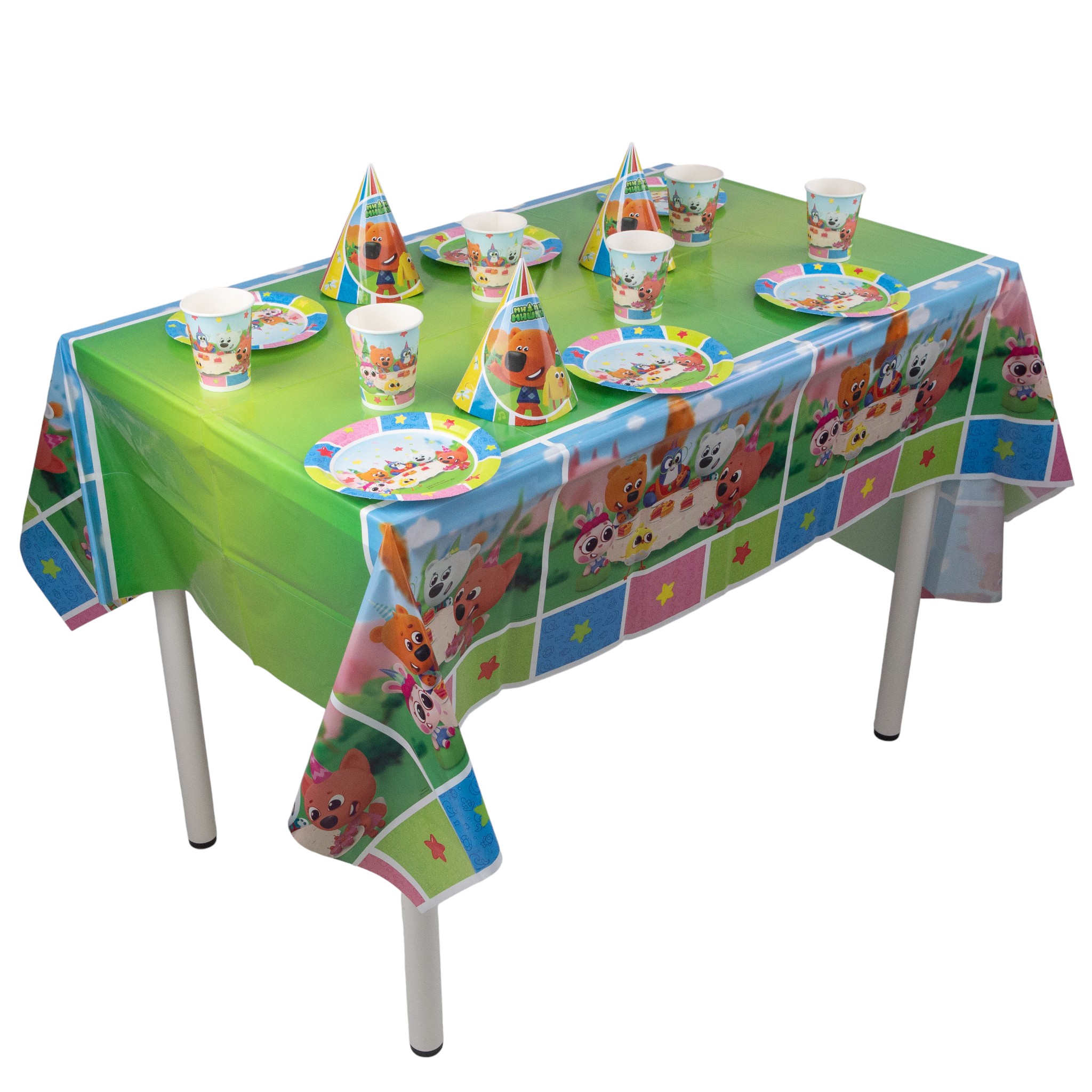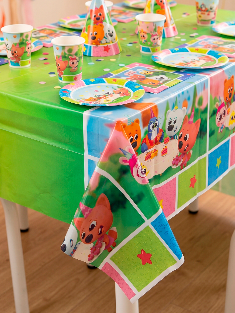 Праздничная скатерть «Мини-Мишки» дополнит оформление и добавит праздничных акцентов вечеринке.