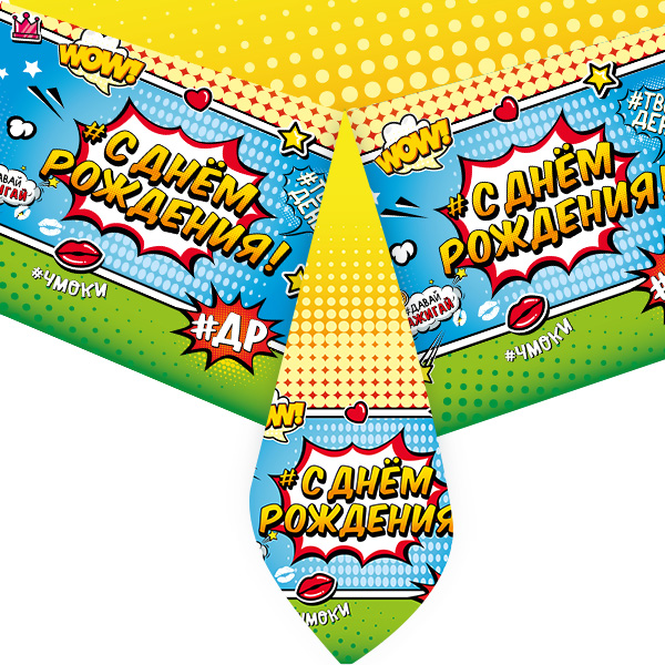 Праздничная скатерть «Молодежная»  дополнит оформление и добавит праздничных акцентов вечеринке.