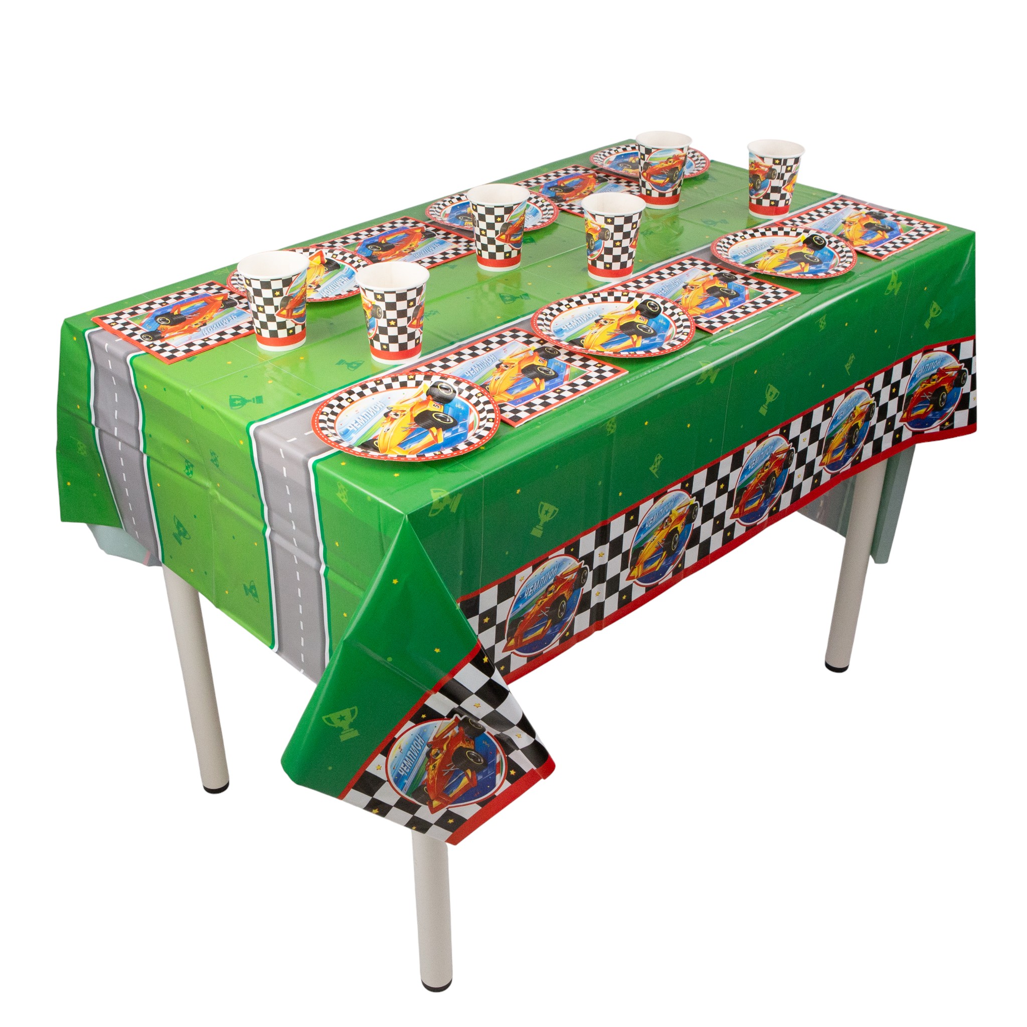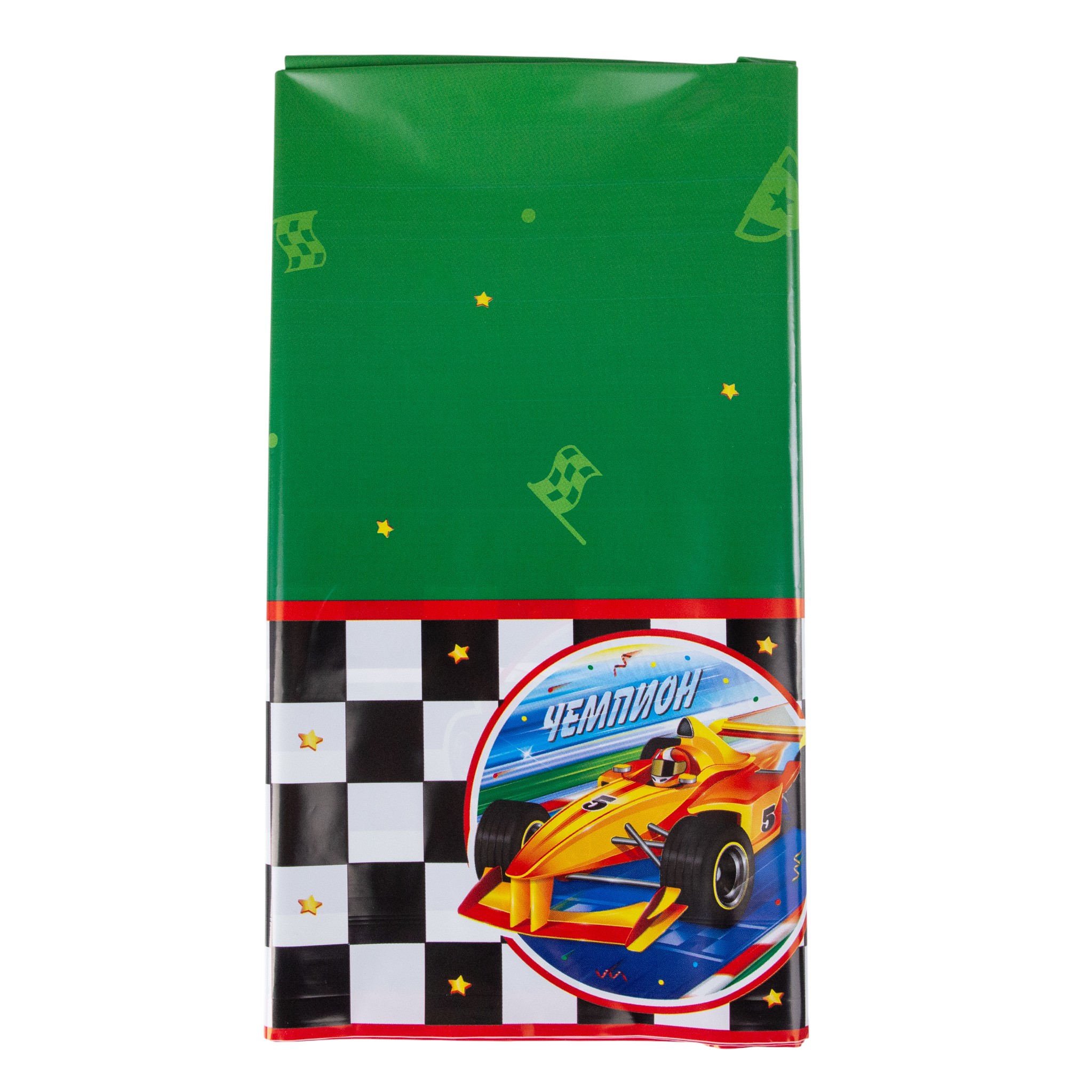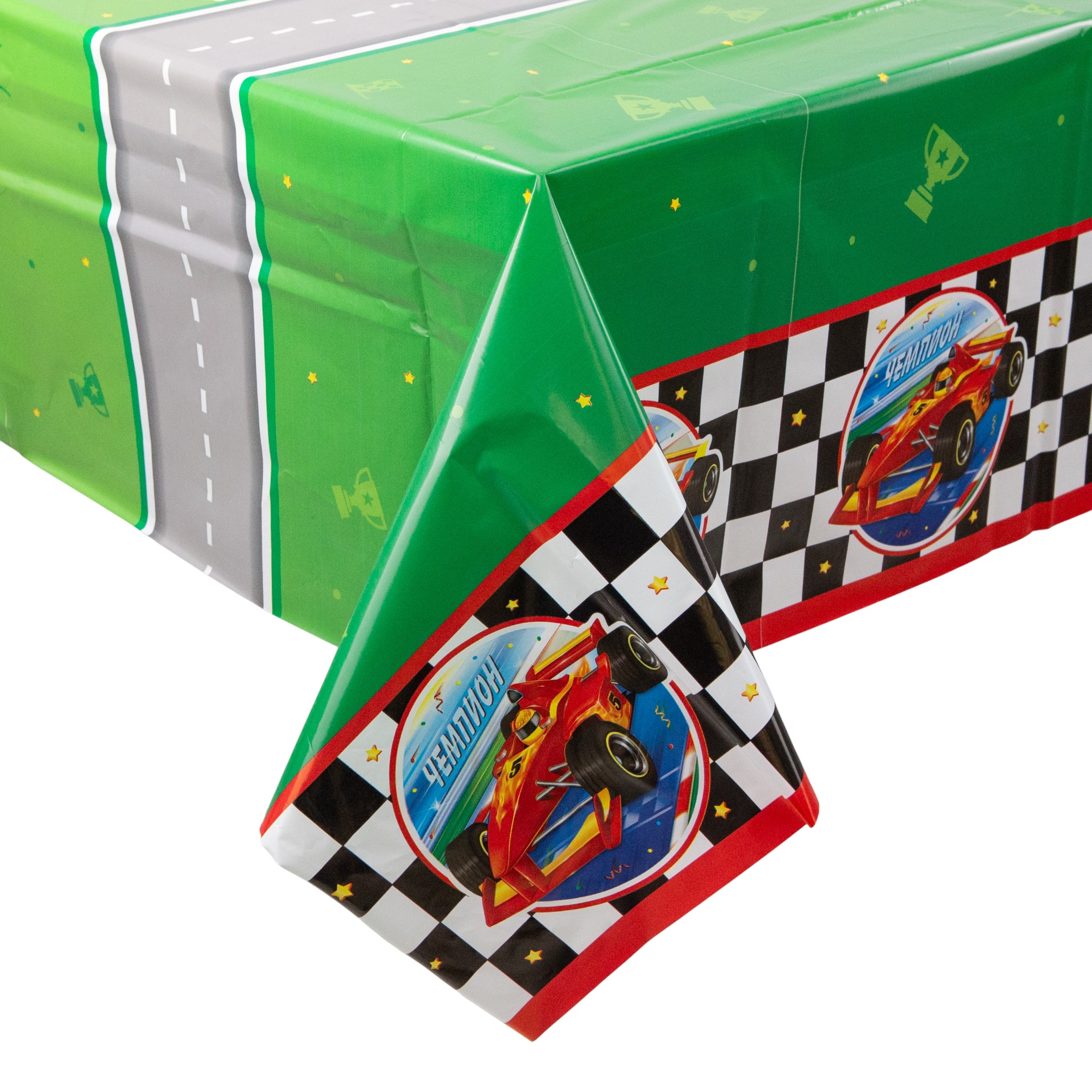 Праздничная скатерть «Тачки Чемпион» дополнит оформление и добавит праздничных акцентов вечеринке.