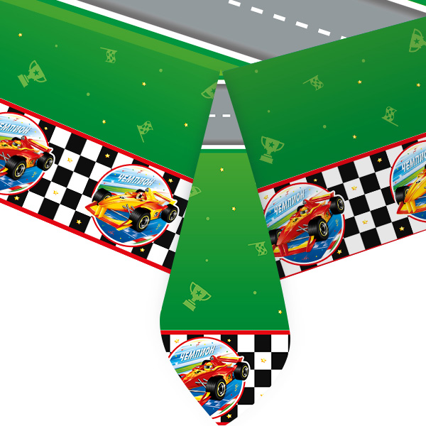 Праздничная скатерть «Тачки Чемпион»  дополнит оформление и добавит праздничных акцентов вечеринке.