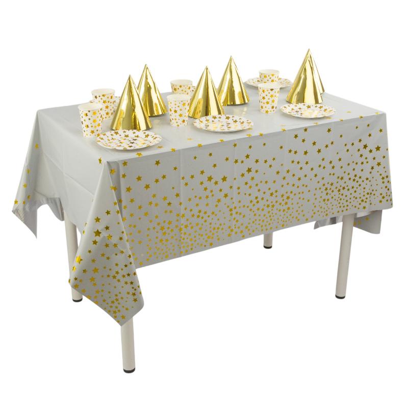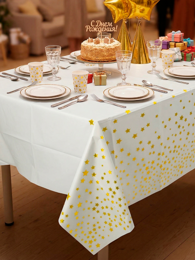 Скатерть "Звезды Золотые" изготовлена из пленочных материалов. Фольгированная скатерть с удивительным лазерным металлизированным эффектом позволит засиять любому кэнди-бару.