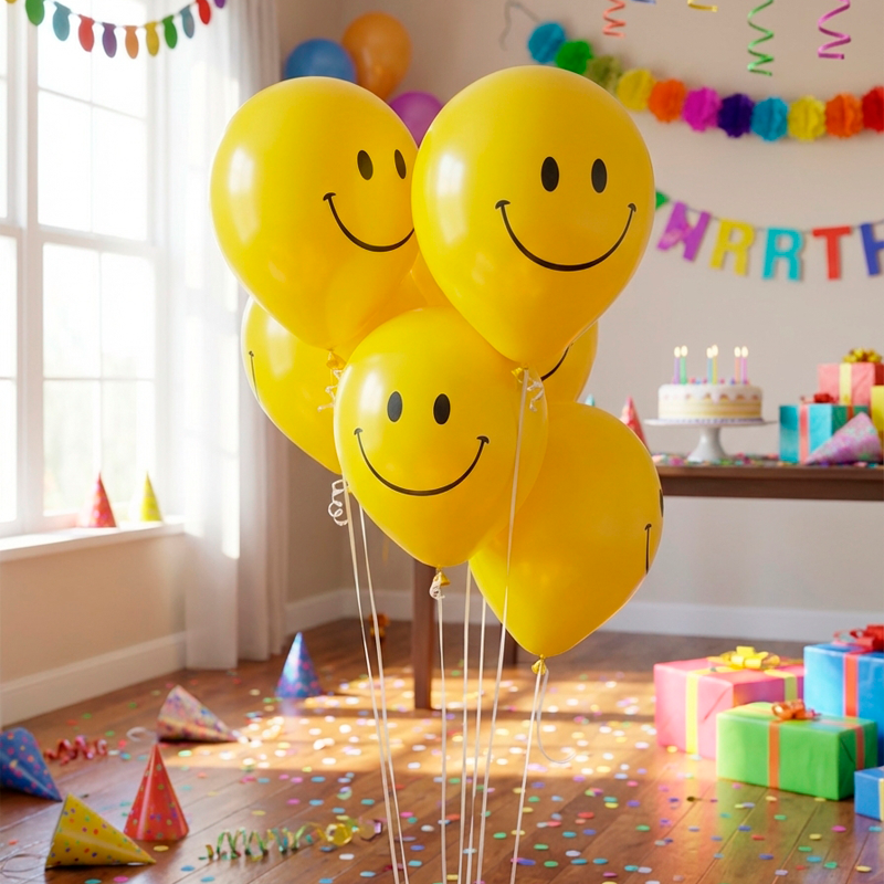 Шары с изображением популярных смайлов (эмодзи). Шар можно подарить ребенку, как в подарок или украсить ими праздник.