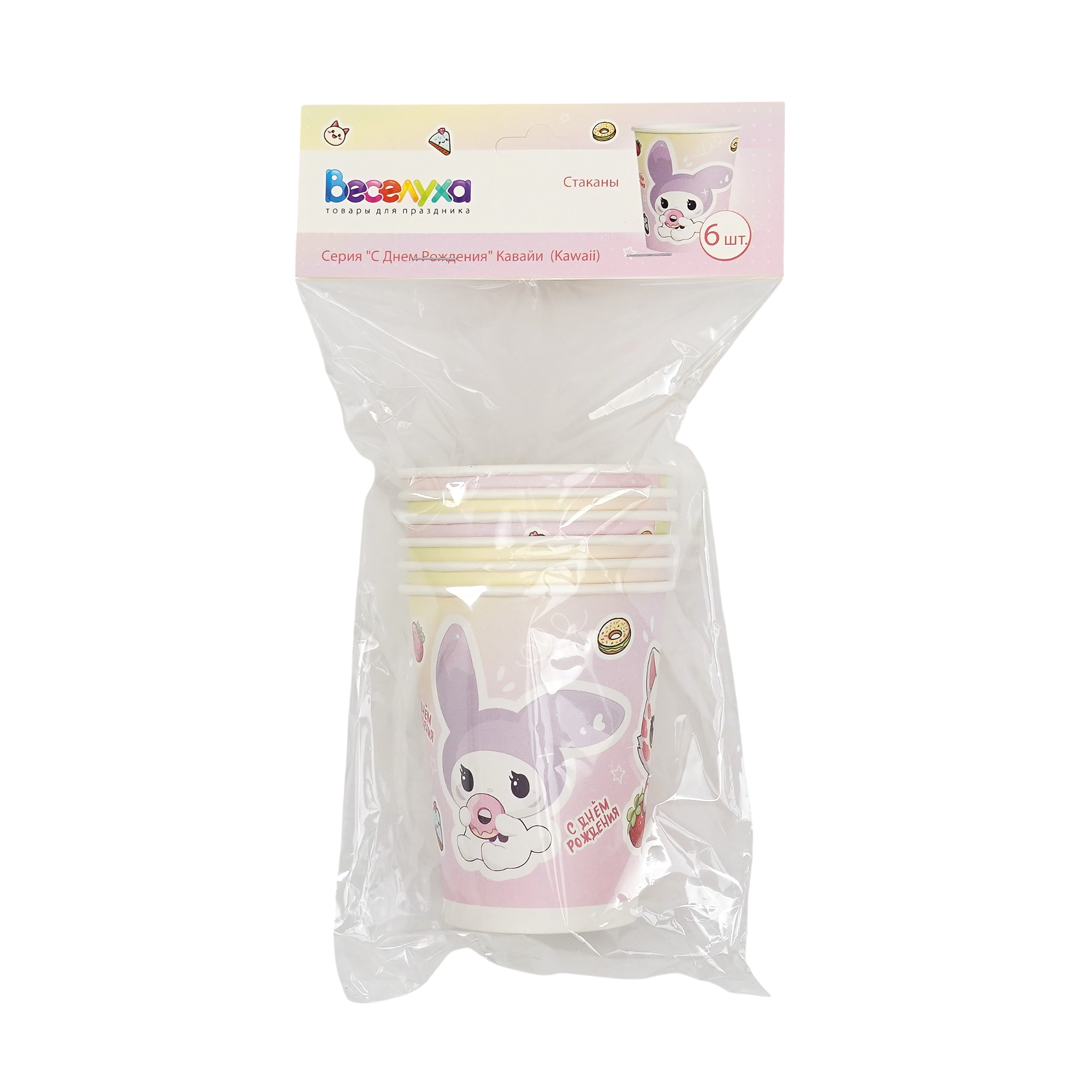Стаканы бумажные "С Днем Рождения" Кавайи (Kawaii)