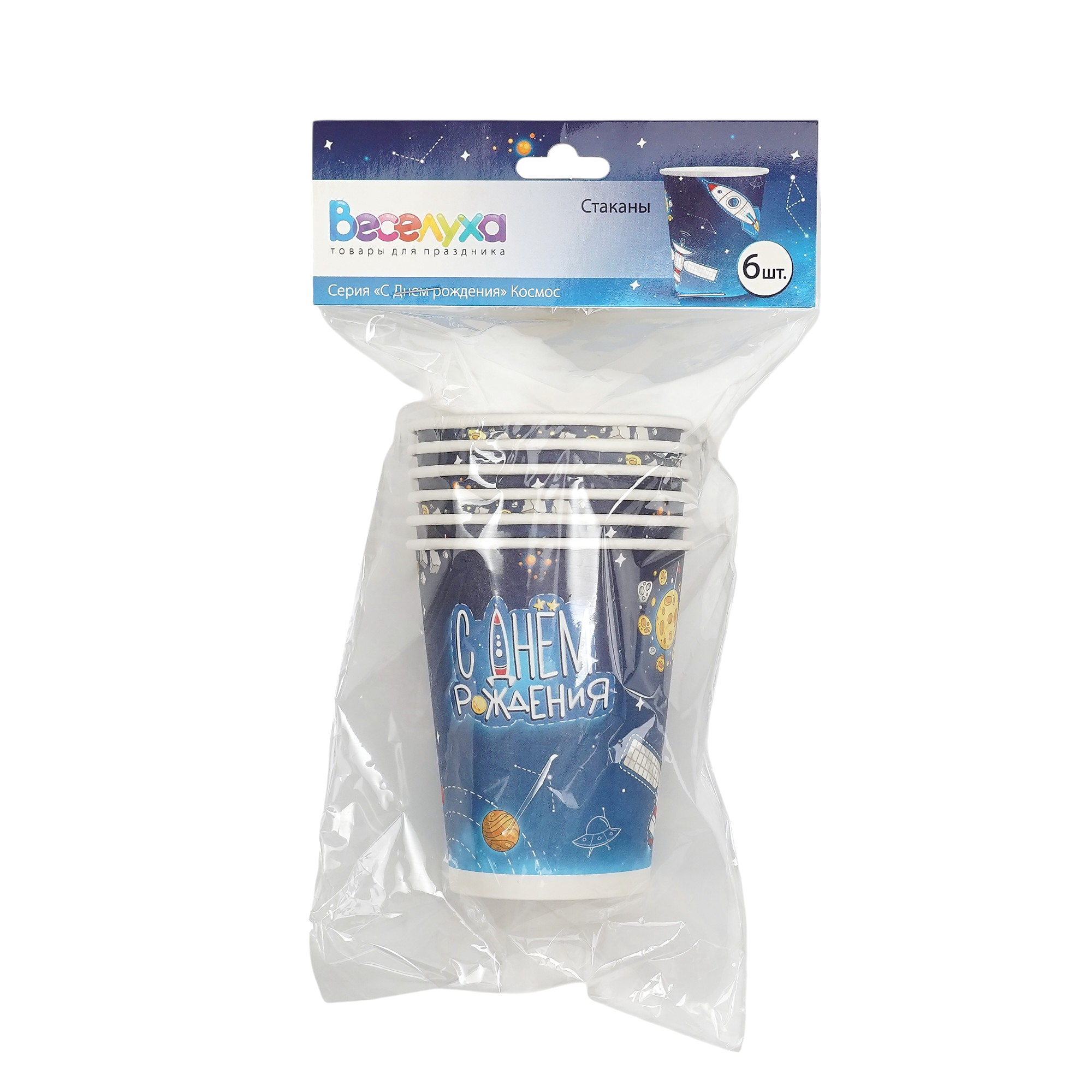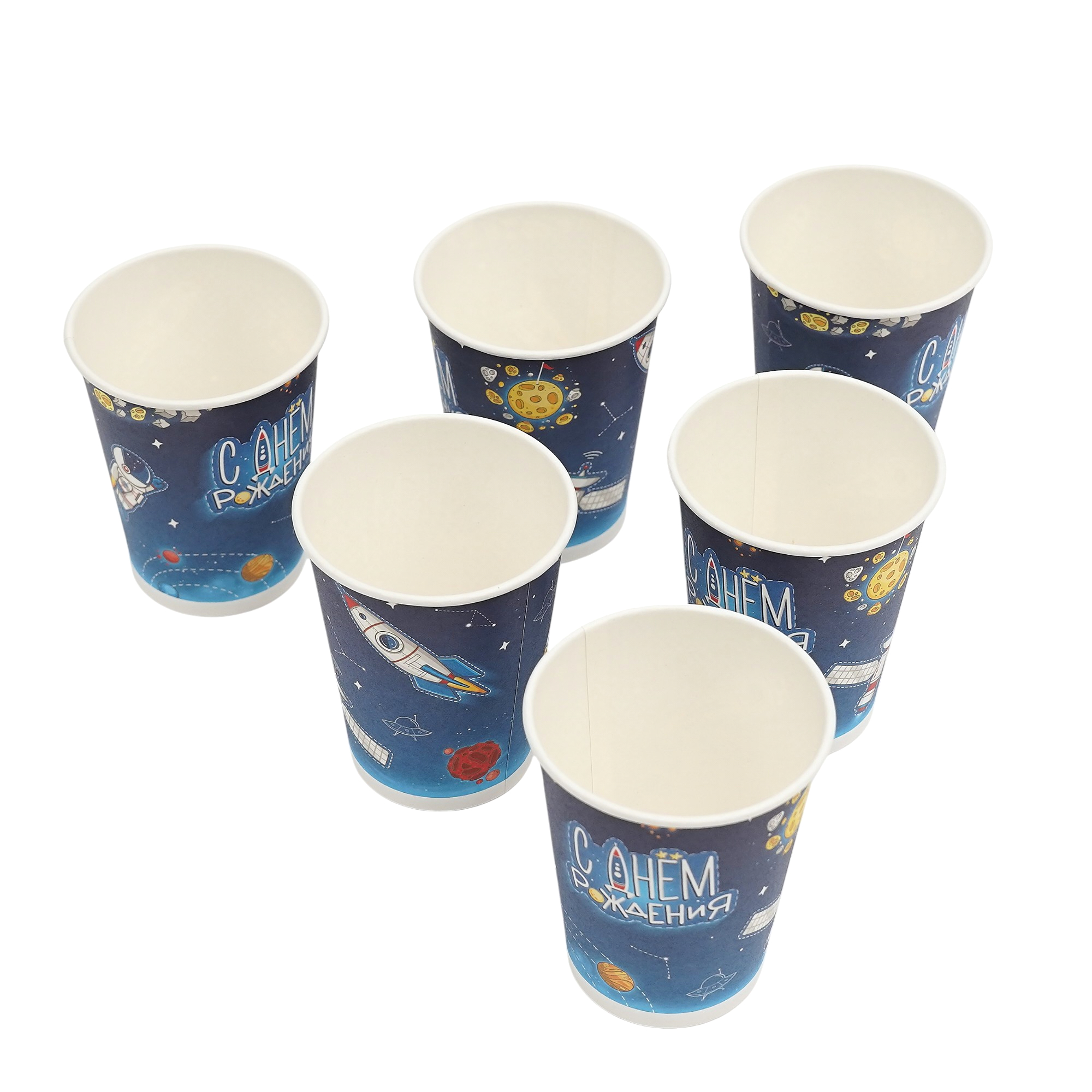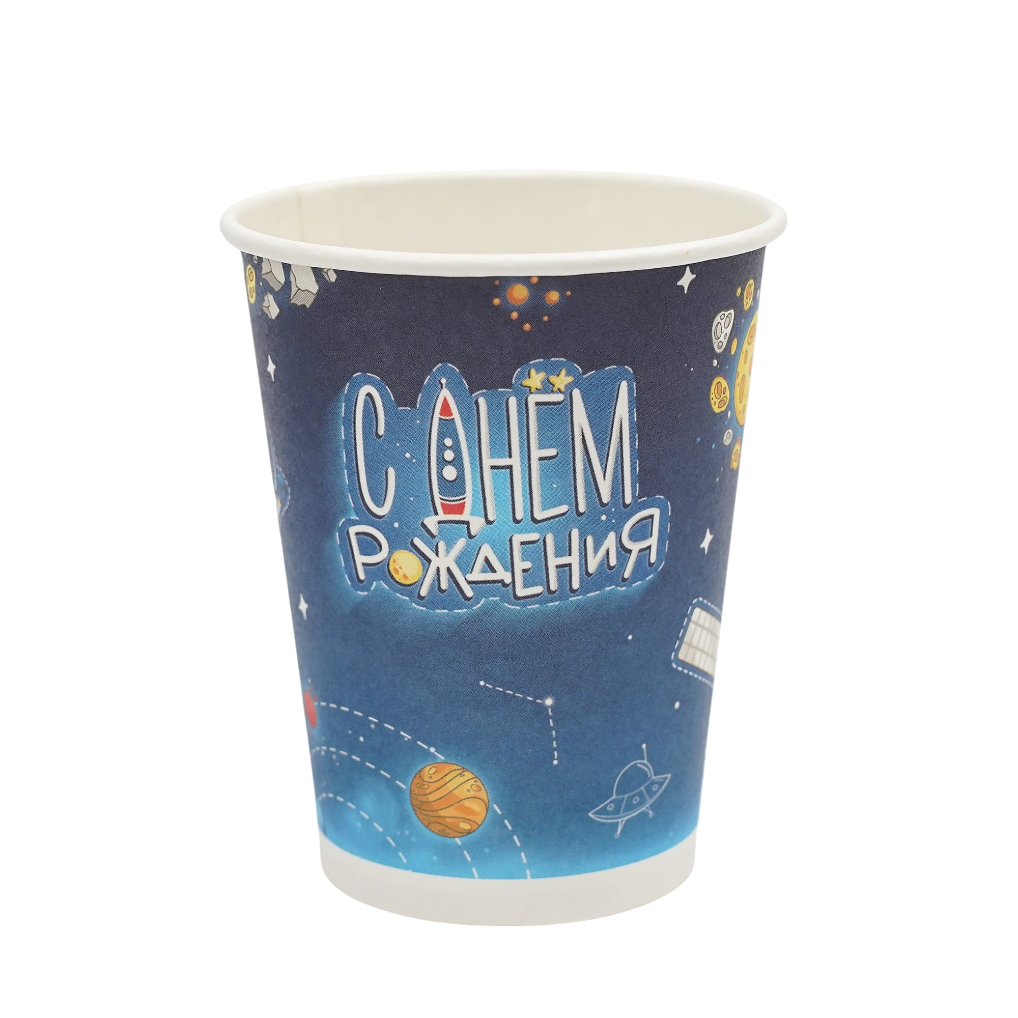 Праздничные стаканы «С Днем рождения» Космос идеально украсят Ваш праздничный банкет. Стаканы подходят как для холодных, так и горячих напитков.