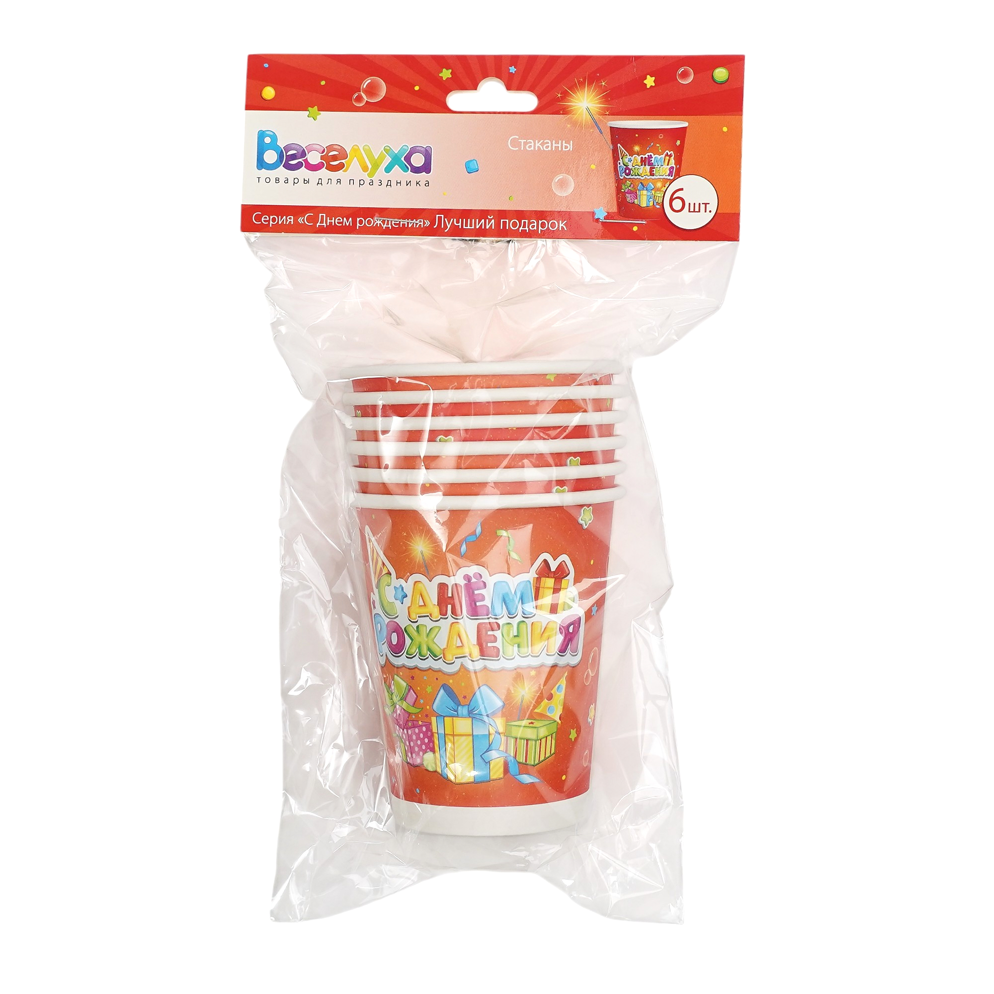 Праздничные стаканы "С Днем Рождения" Лучший подарок идеально украсят Ваш праздничный банкет. |