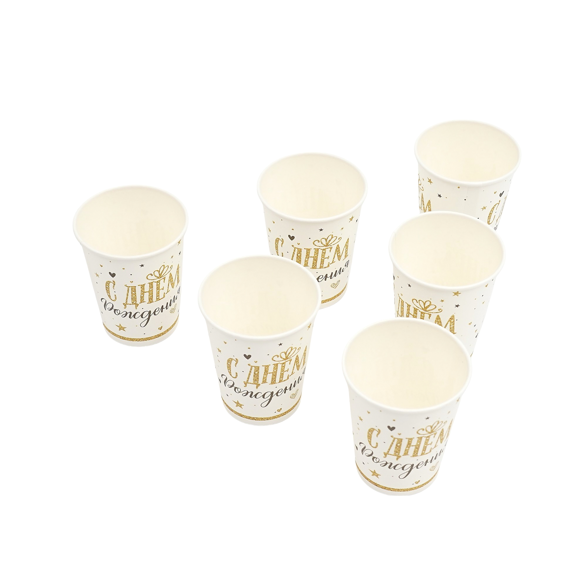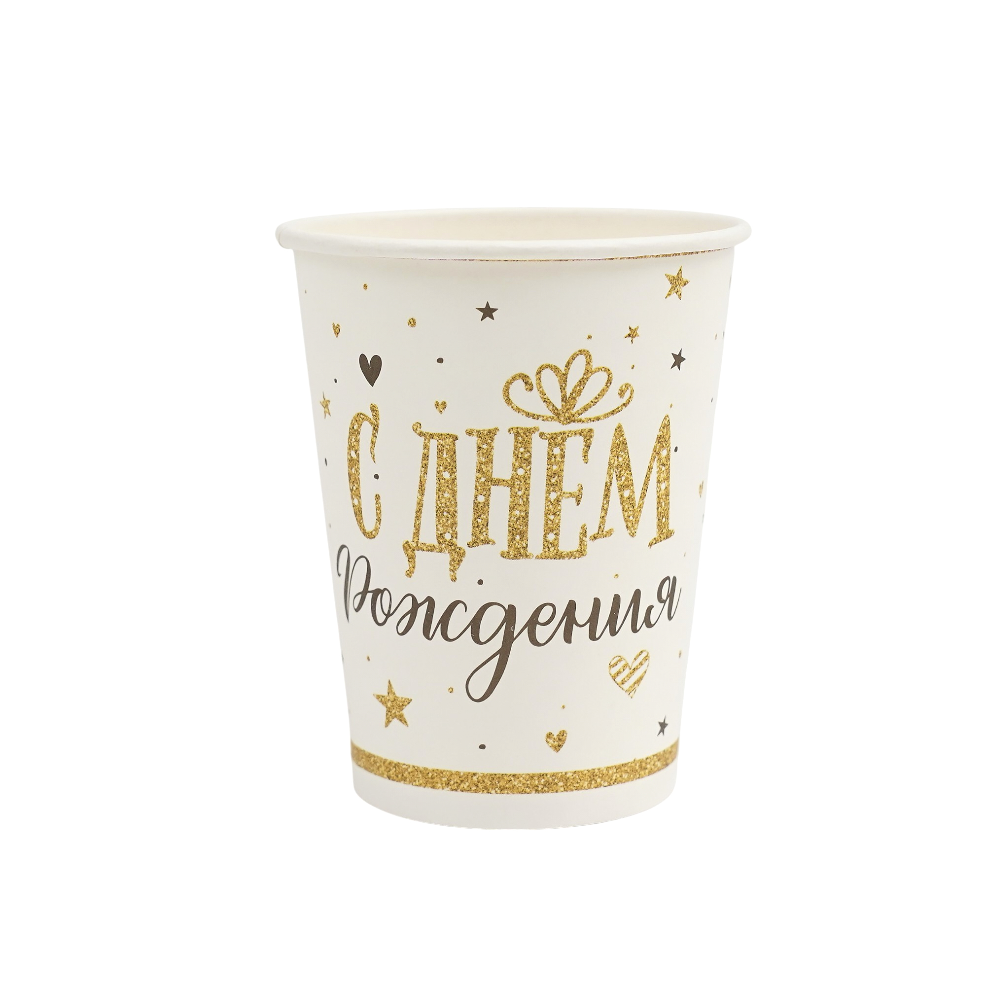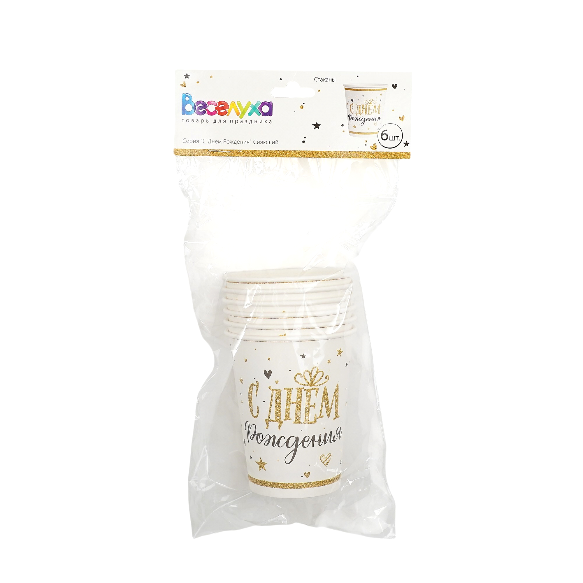 Праздничные стаканы "С Днем Рождения" Сияющий идеально украсят Ваш праздничный банкет. Стаканы подходят как для холодных, так и горячих напитков.