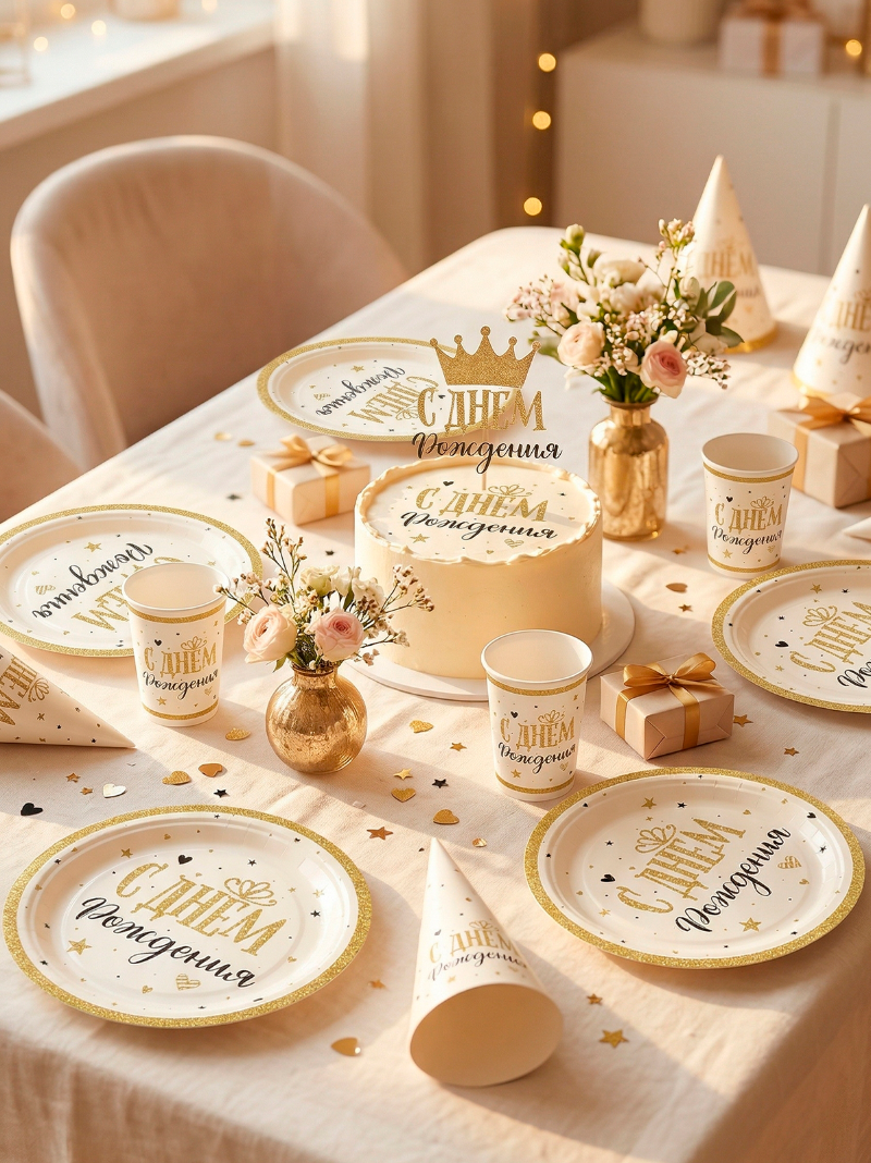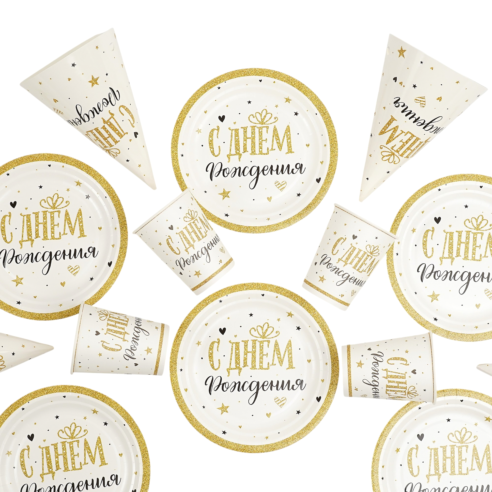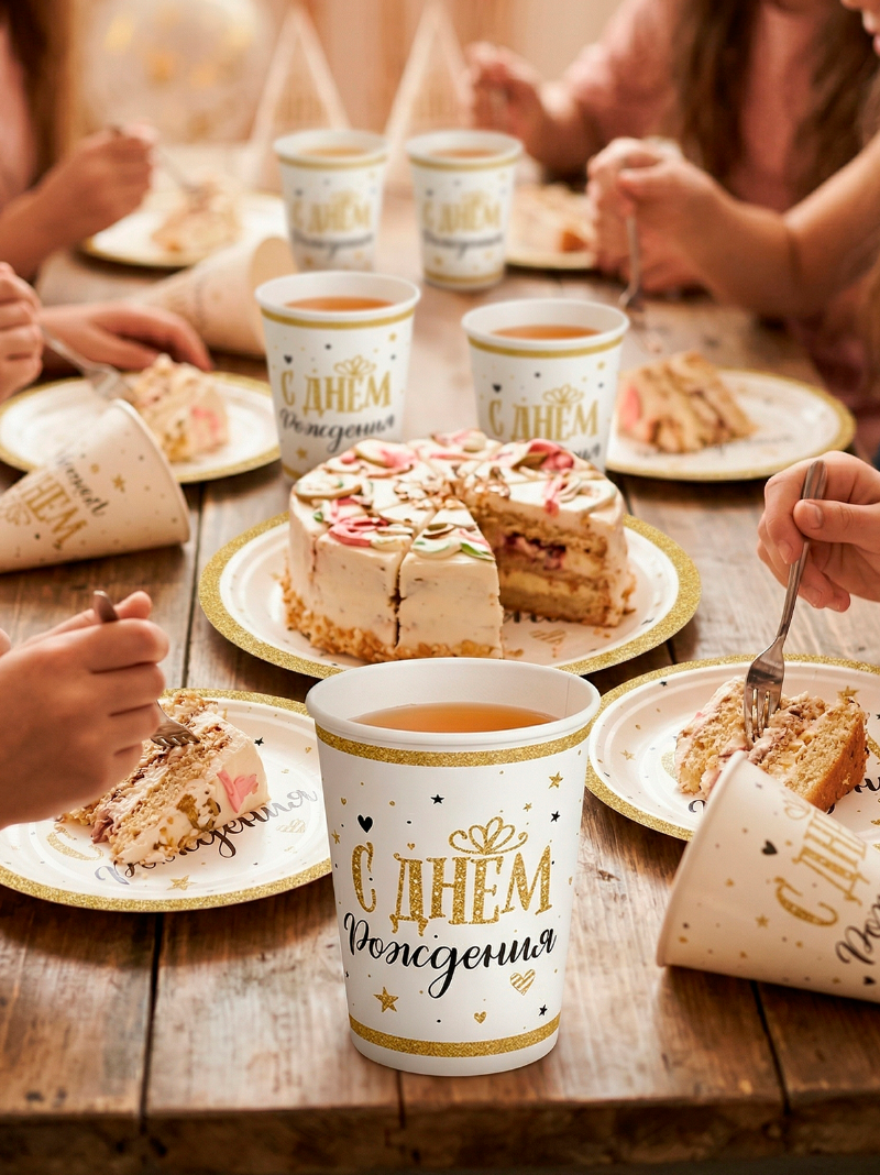 Праздничные стаканы "С Днем Рождения" Сияющий идеально украсят Ваш праздничный банкет. Стаканы подходят как для холодных, так и горячих напитков.