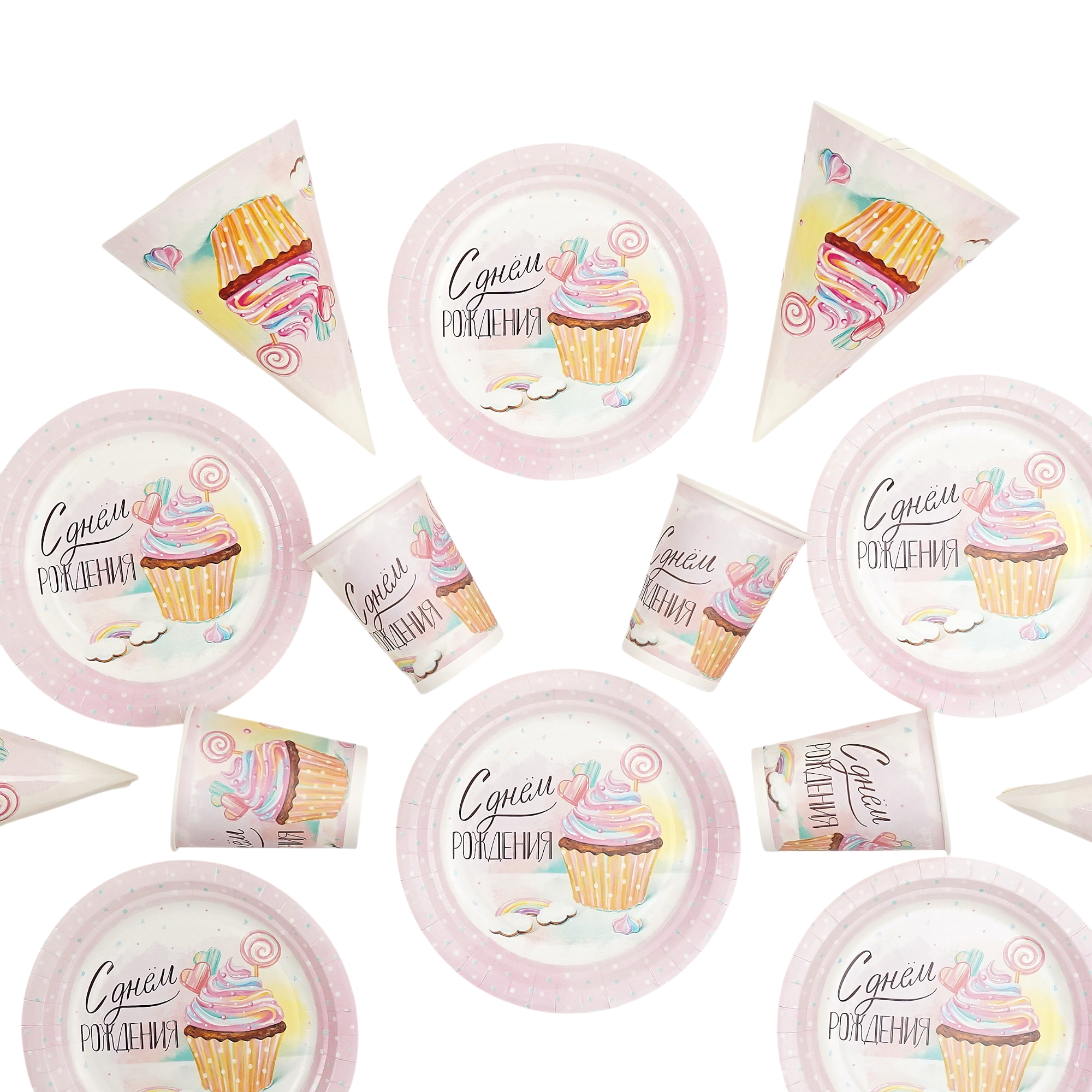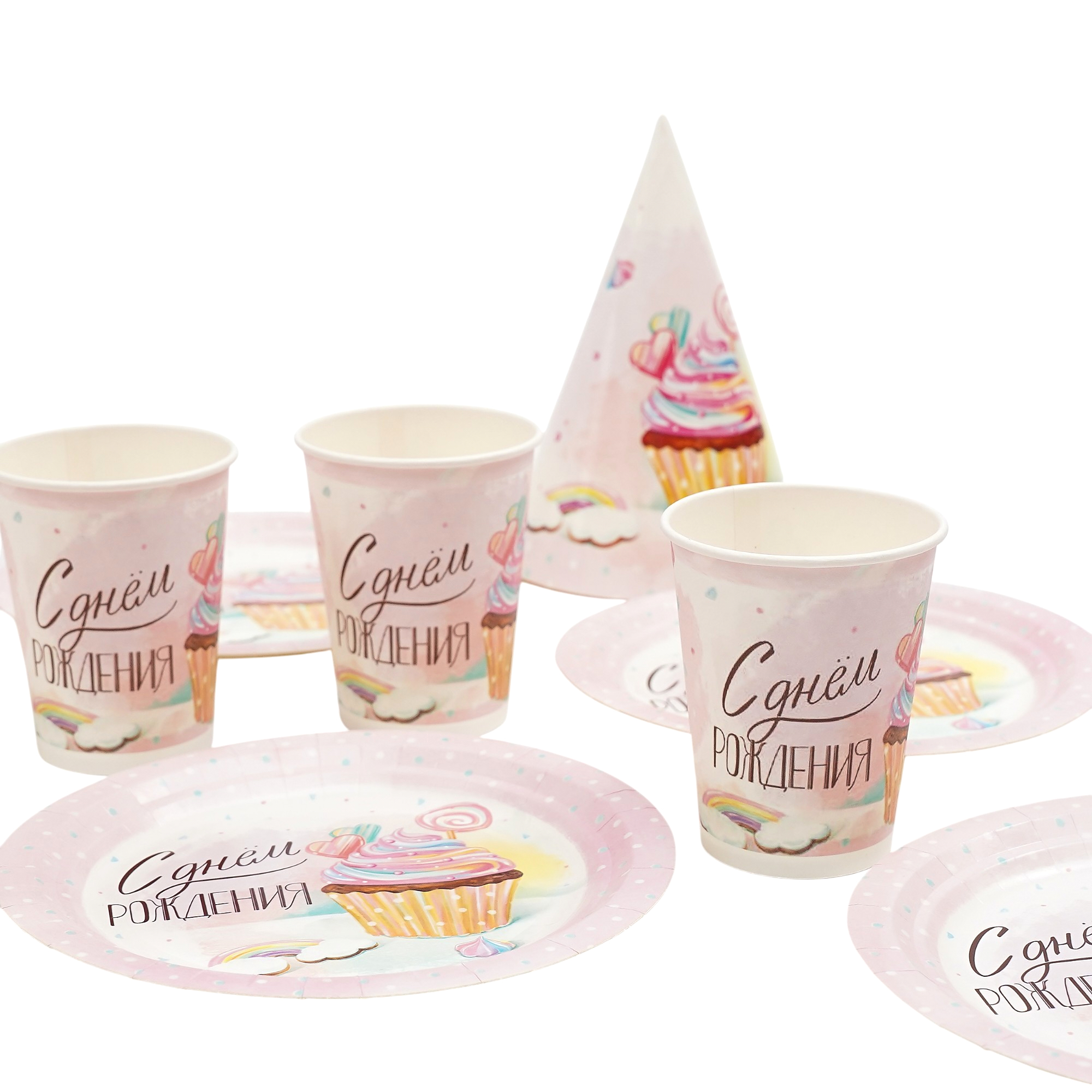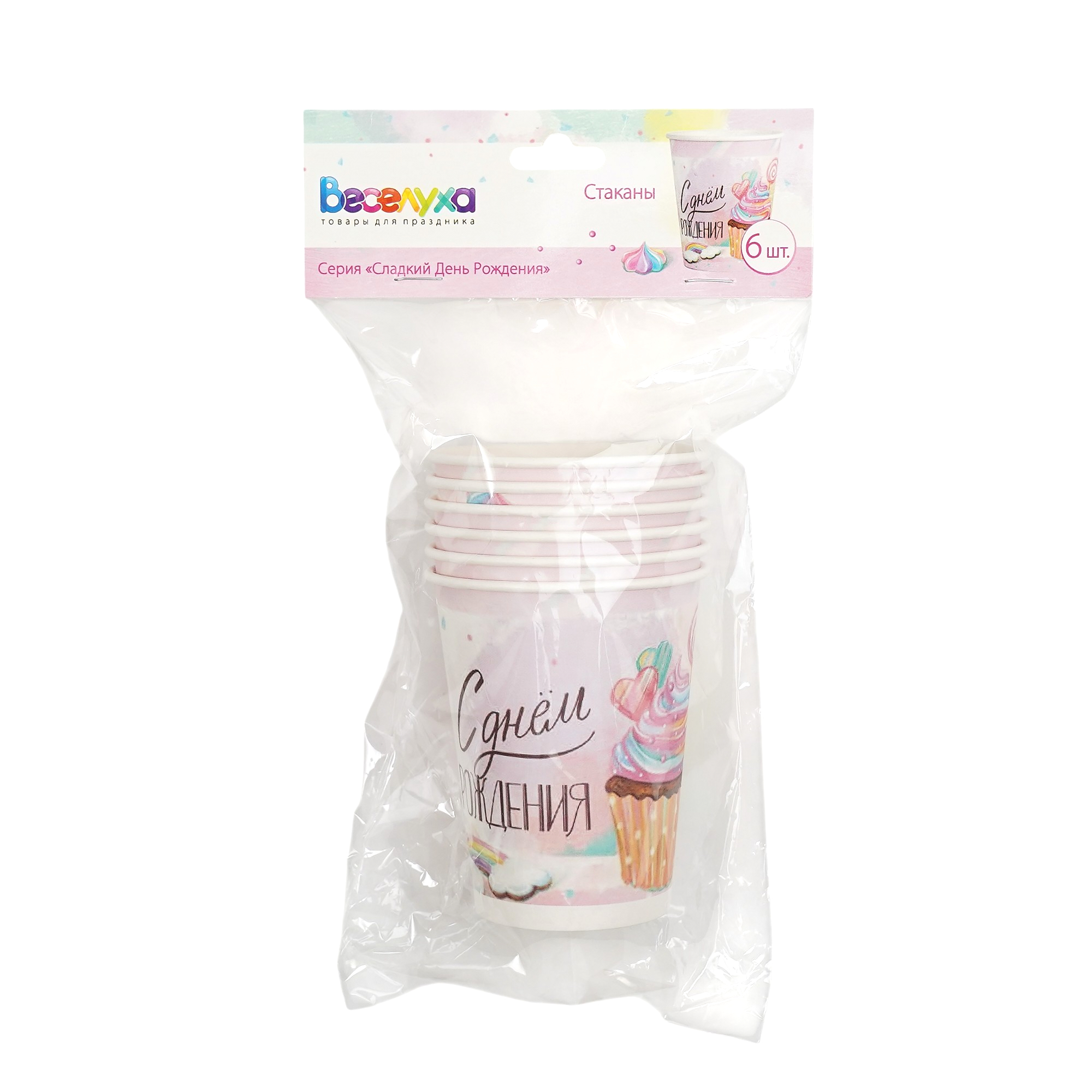 Праздничные стаканы "Сладкий День Рождения" идеально украсят Ваш праздничный банкет.