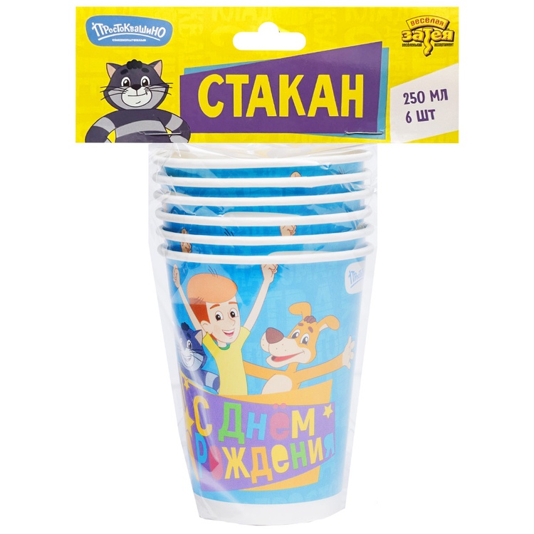 Стаканы одноразовые Простоквашино "С днем рождения!"