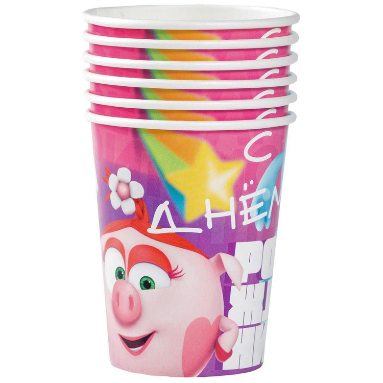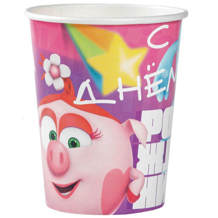 Бумажный стаканчик объемом 250мл. Используется совместно с другими элементами коллекции "Смешарики" как украшение стола или по своему непосредственному назначению. В упаковке 6 стаканчиков.