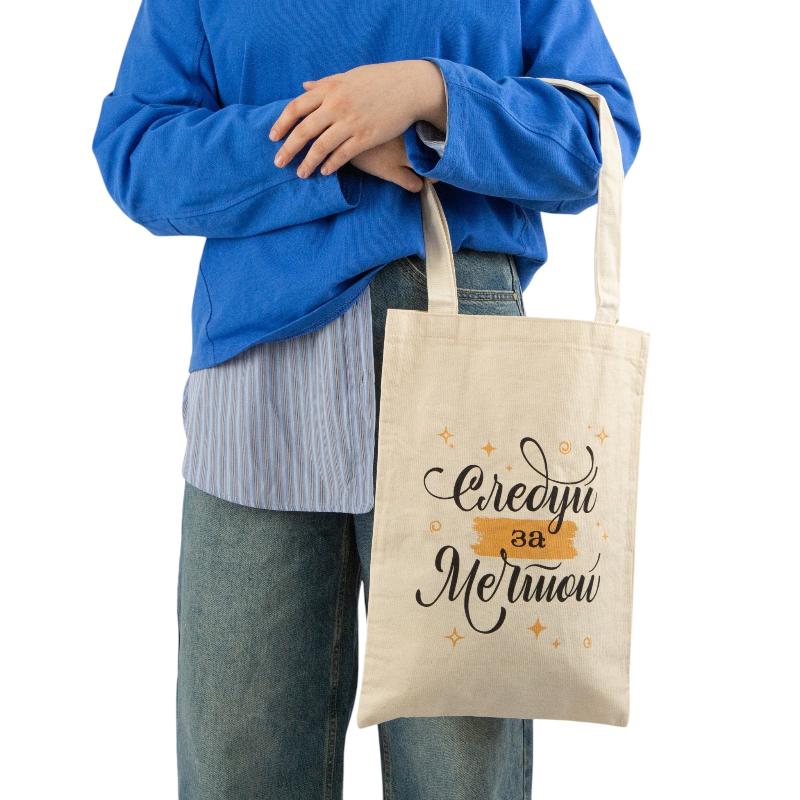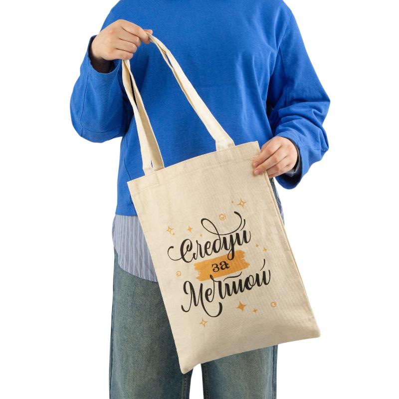 Стильная экосумка "Следуй за мечтой" из 100% хлопка отлично подходит для повседневного использования. Она вместительна и удобна в эксплуатации: в нее легко помещаются все необходимые вещи, сумку можно стирать, легко сложить и носить с собой. Благодаря оригинальному многоцветному принту такая сумка выглядит стильно и свежо.