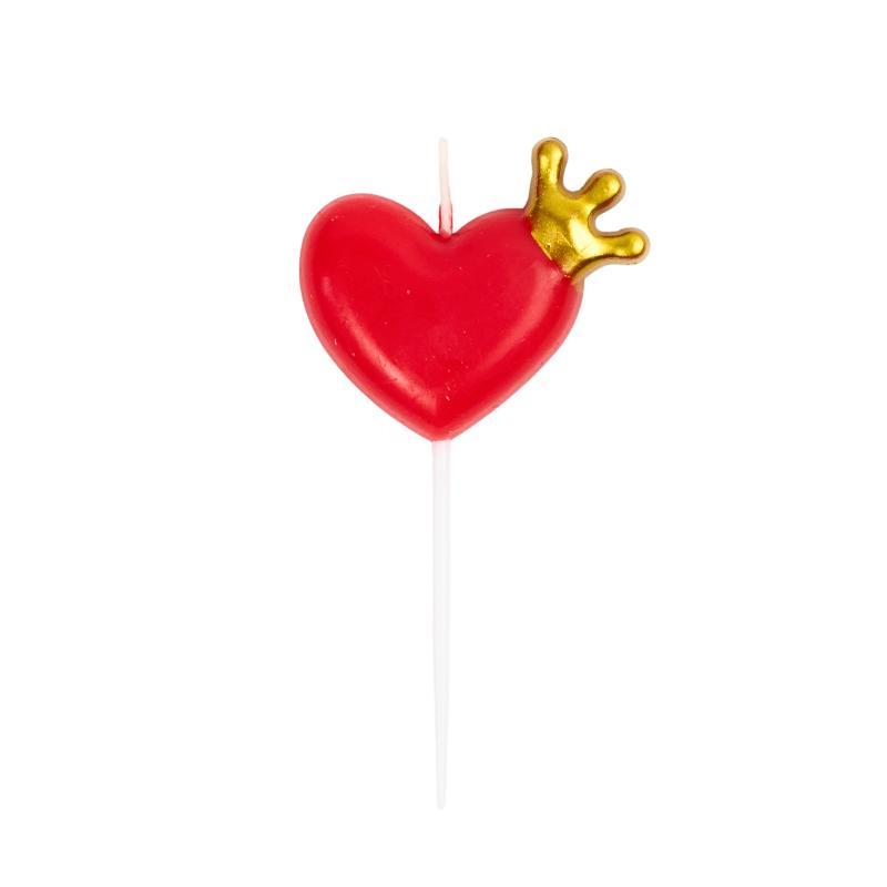 Уникальная форма свечи в виде сердца с короной эстетично дополнит самые яркие дизайны праздничного торта.