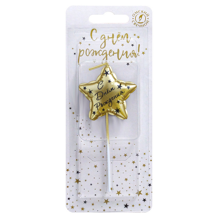 Свеча на шпажках Воздушная звездочка Золото станет украшением тортика и порадует именинников. Стильный дизайн свечей универсален и подойдет к любой тематической вечеринке.