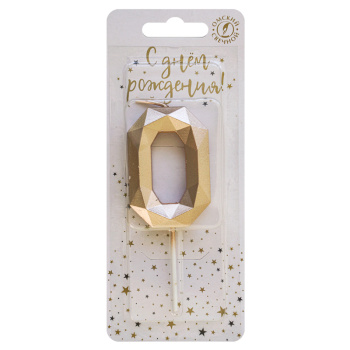 Свеча тортовая цифра 0 на шпажке "Многогранник" Шампань
