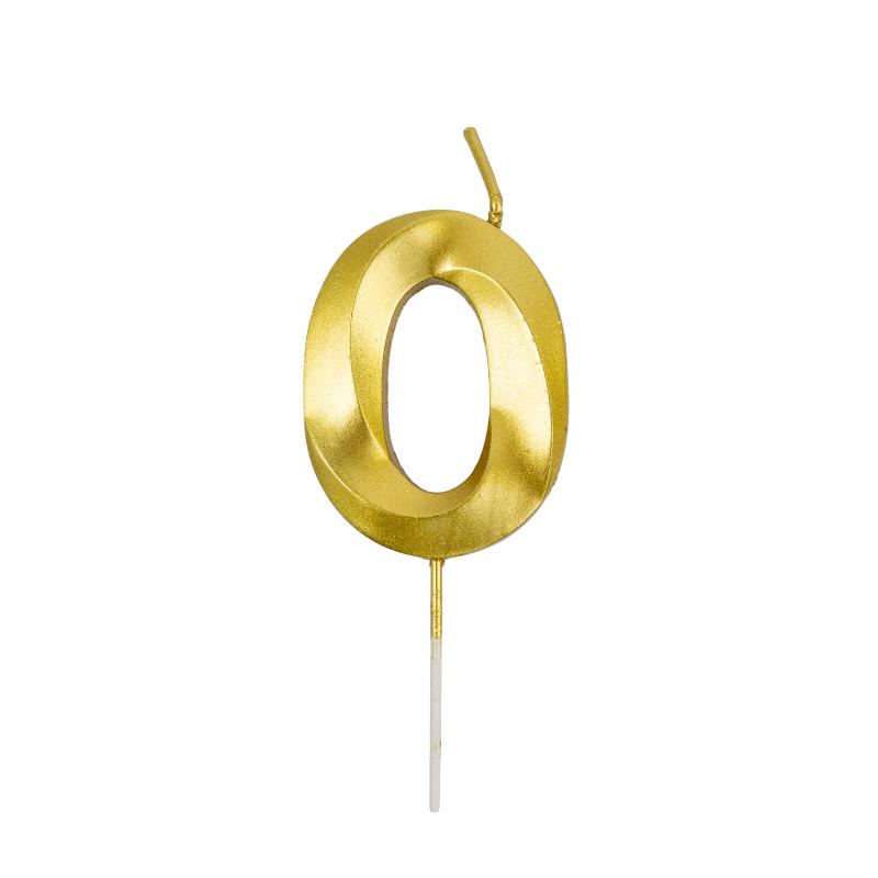 Свеча тортовая цифра 0 на шпажке "Витые" Золото