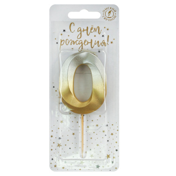 Свеча тортовая цифра 0 на шпажке "Золото-Серебро"