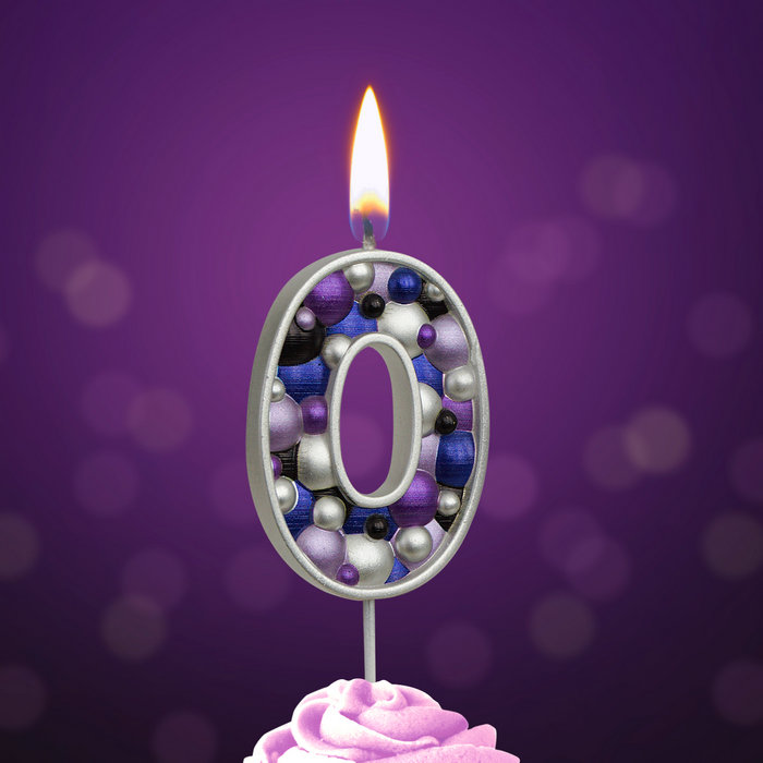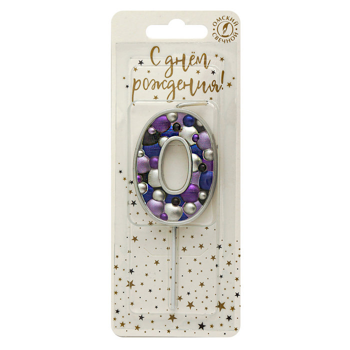 Свеча тортовая цифра 0 "Пузырьки" Серебро