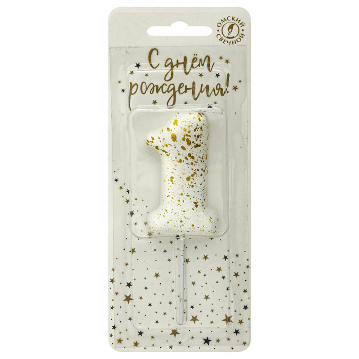 Свеча тортовая цифра 1 "Белые брызги"