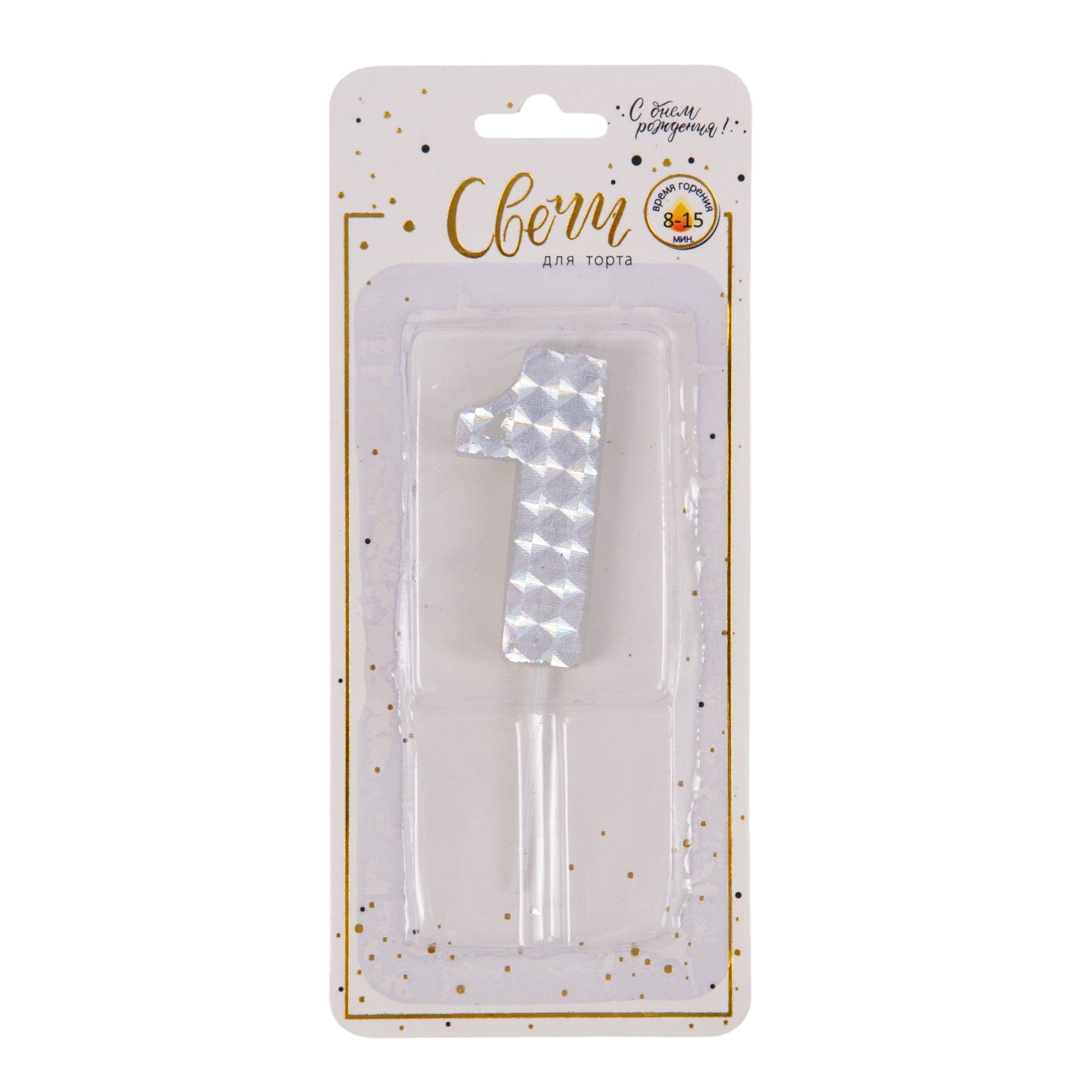 Свеча тортовая цифра 1 "Голография" металлизированная