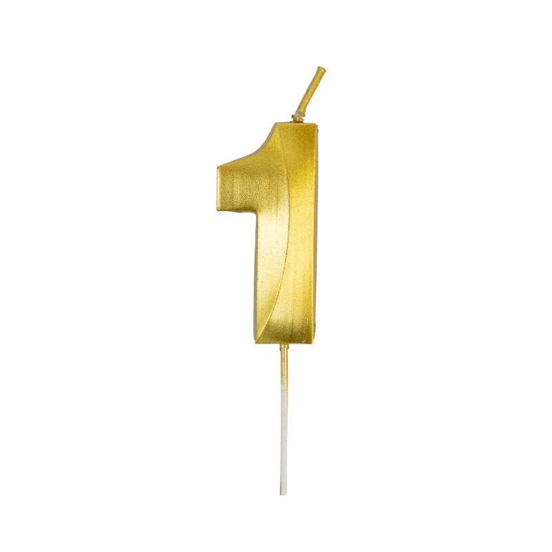 Свеча тортовая цифра 1 на шпажке "Витые" Золото