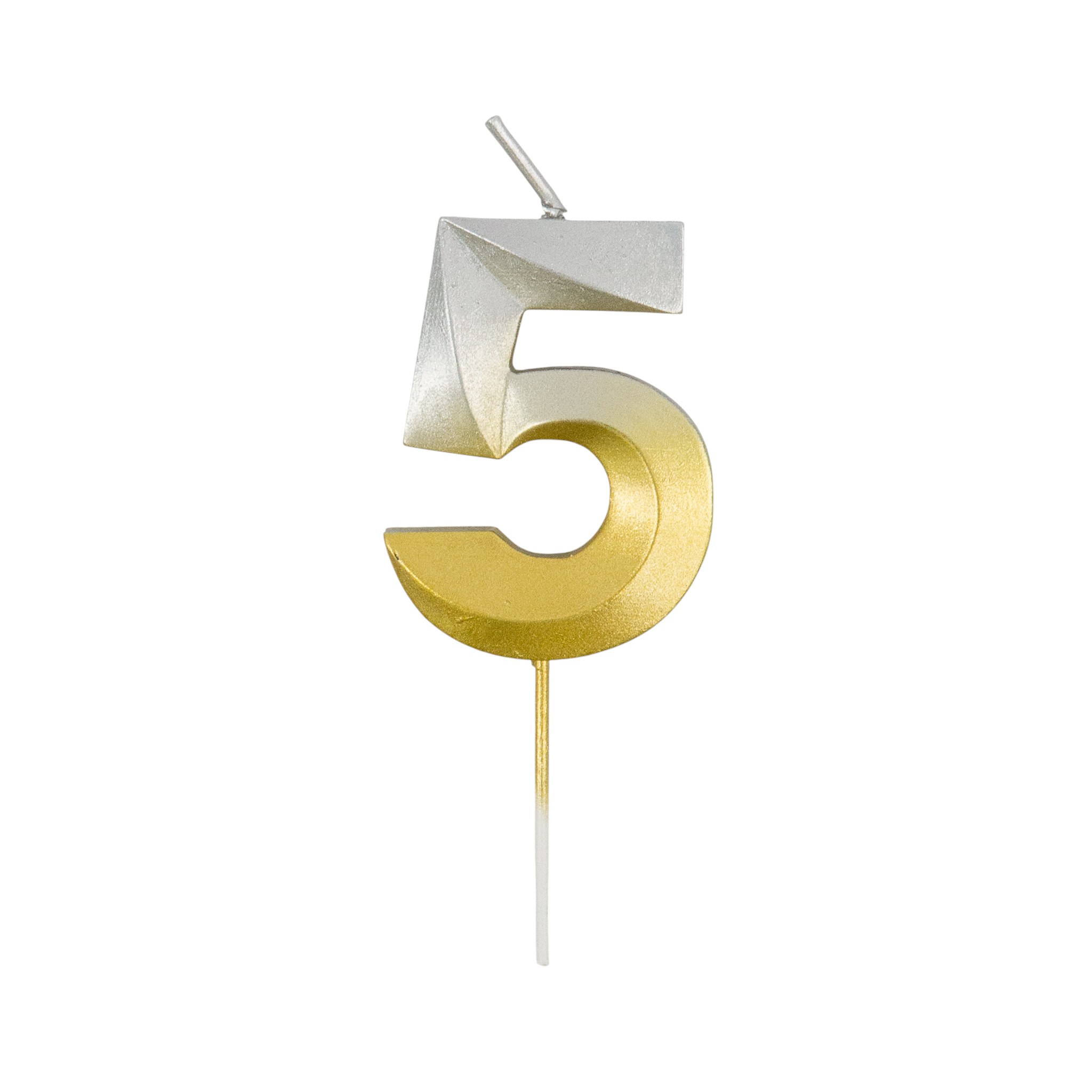 Свеча тортовая цифра 5 на шпажке "Золото-Серебро"